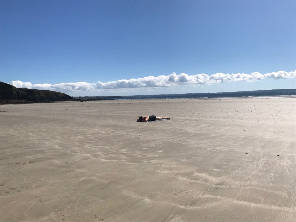 There’s definitely no problem finding a place to lay out a towel! If only there weren’t an army of flies advancing upwind across the sand, it would be perfect. Well, for M it is perfect, because the flies are only stalking J. Apparently they got the memo from the mosquitoes back home…