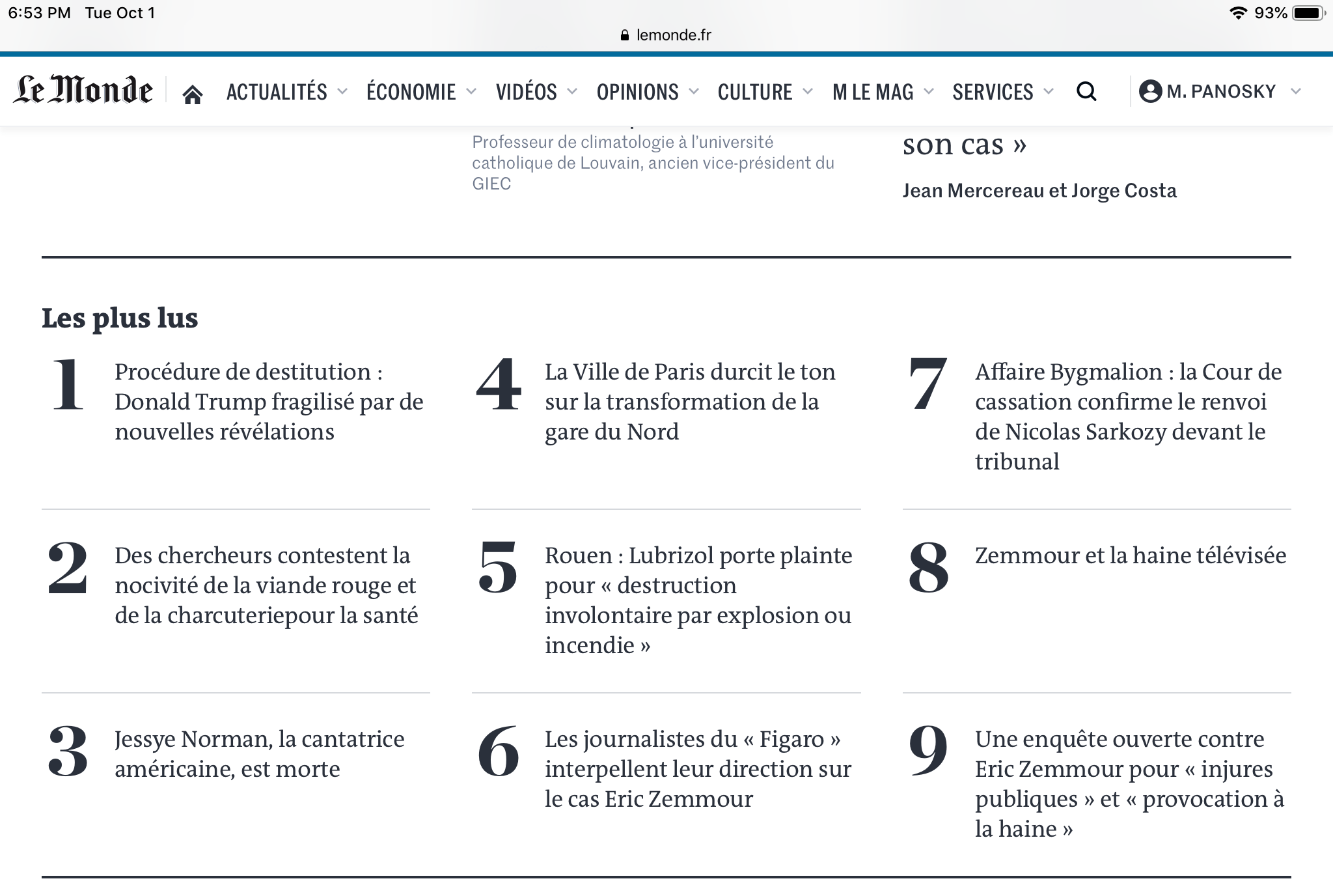 Which is good, because we need to get out of the house more. When we stay in, we read the news. And what was the most read article on lemonde.fr yesterday? Trump’s impeachment. There’s no escape!