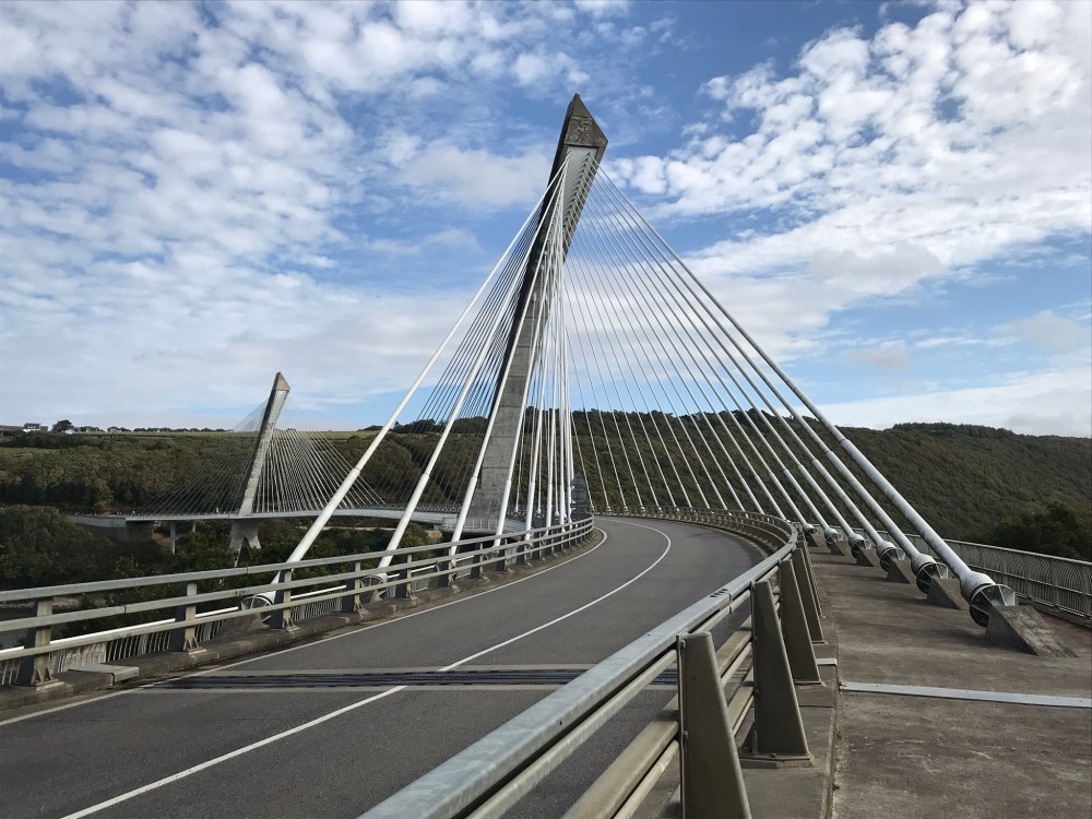 We had driven over this bridge a couple of weeks ago and made a mental note to come back. When fair skies beckoned today, we headed over to take a closer look. The bridge takes the D791 over the Aulne river in spectacular fashion. The French were kind enough to put in parking areas on both sides as well as a viewing platform on a portion of the earlier bridge… the only thing missing was les toilettes.