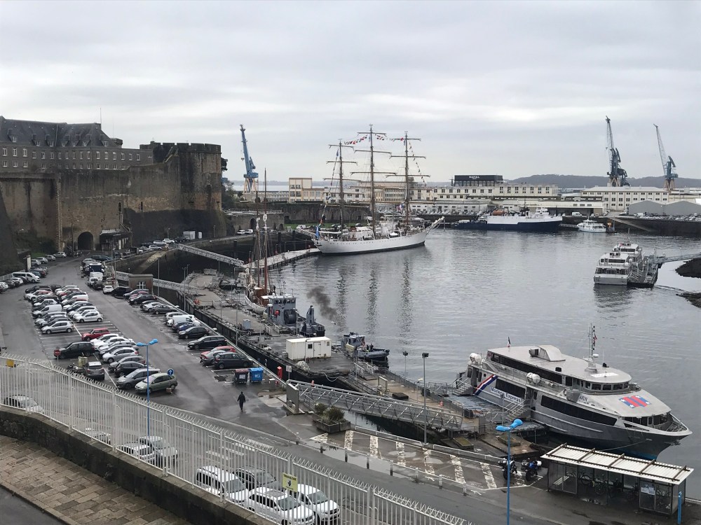 A trip to Brest provided a rather startling contrast to our quiet country life in Lézargol. Just looking back at the pictures makes me tense up a little! On the plus side, there were lots of dining options and M got the burger he’d been craving. An American-style burger, no less, from a restaurant called Station Saint Louis. I suppose it’s a sign that the French think of New York when they think of America, as the American-style burgers at this “Saint Louis” restaurant were all named for New York City – the Manhattan, the Greenpoint, etc. They also served Breton-style burgers (named for neighborhoods in Brest) and Canadian-style poutine. Pretty much covering all the best things to eat with french fries!