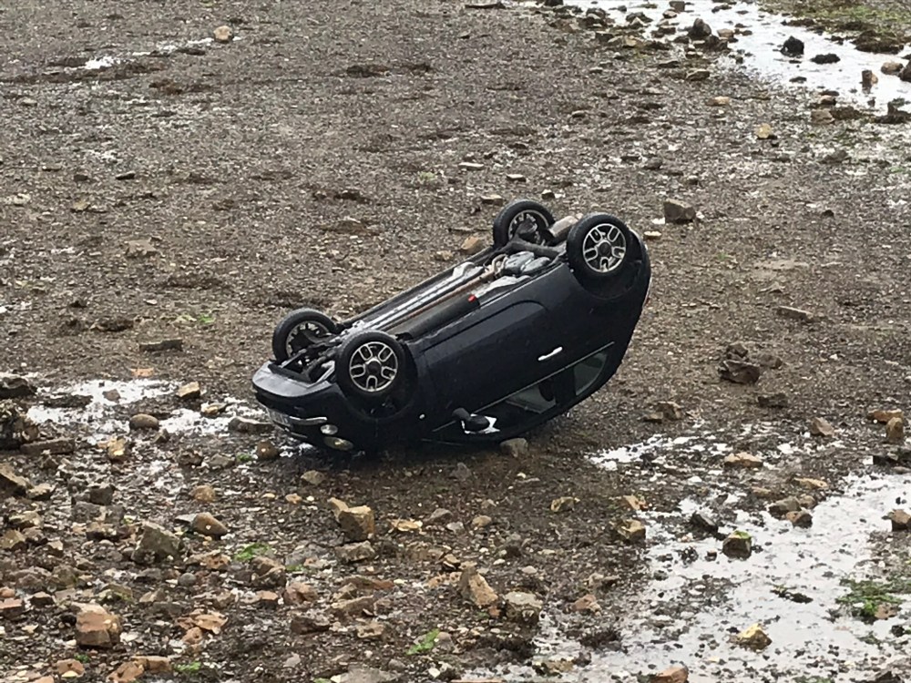 We assume that since the car was all buttoned up, there wasn’t anyone in it when it went over. Our waiter told us it had just happened this morning.