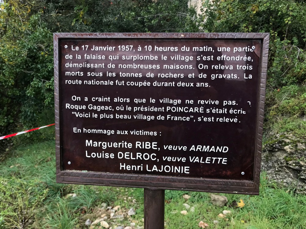 “On January 17, 1957, at 10 am, a part of the cliff overhanging the village collapsed, demolishing several houses. Three bodies were found under tons of rocks and rubble. The main road was closed for two years. It was feared that the village would never recover.