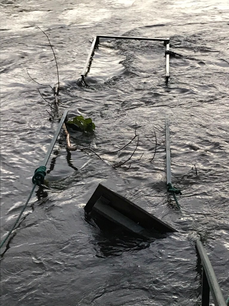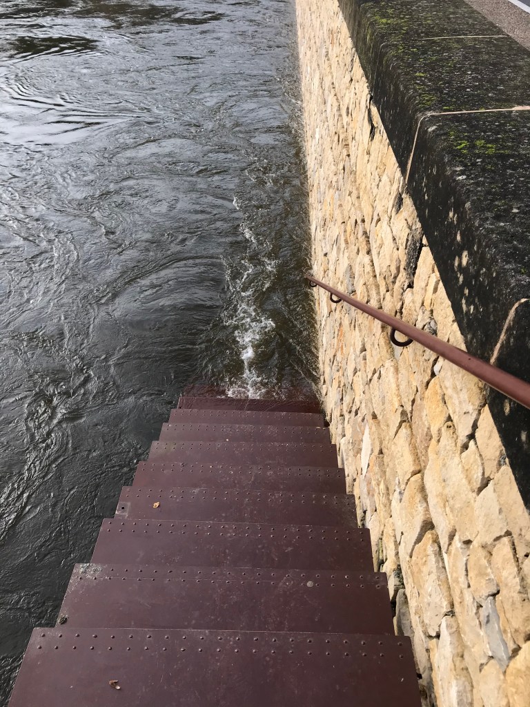 Just how high was it going to get? Every time we went out, we looked at the river and said, “ It’s higher, isn’t it?” But it wasn’t really – we started counting the visible steps on a stairway and it stayed at 12 steps for days.