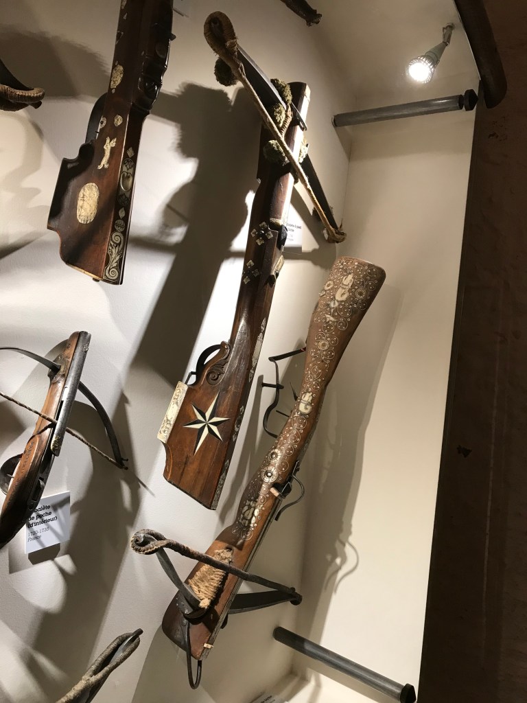 But its most interesting feature is the museum of medieval arms and armor that it houses. We had no idea crossbows were works of art!