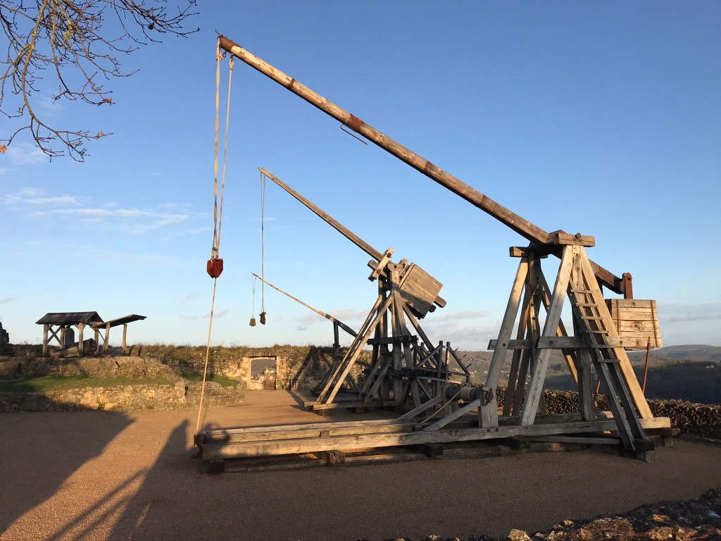 The big trebuchets are definitely the stars of the show. A video showed how they operated (two shots an hour) and included footage of the effect of one of these throwing stones against the castle wall. (It made a pretty big mess – we can only assume they were allowed to do it because the wall was about to be refurbished…)