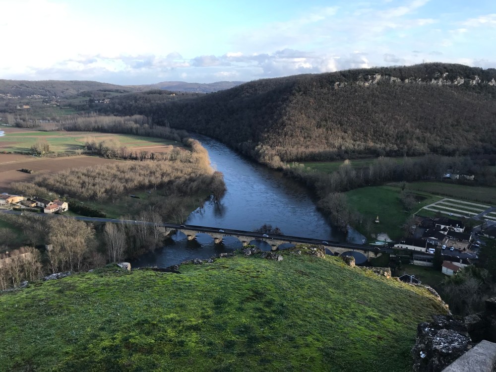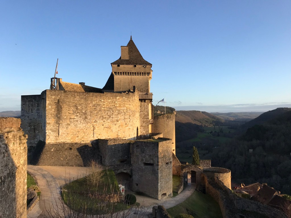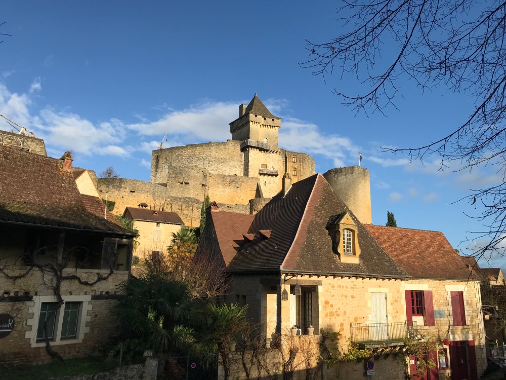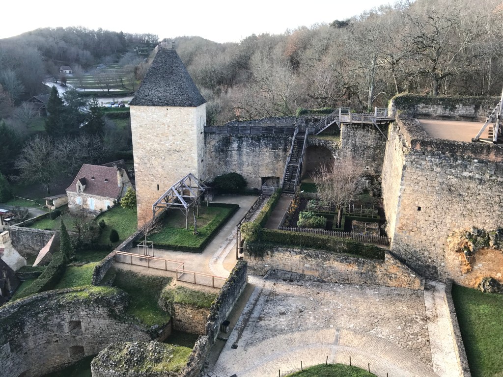 Standing guard over our favorite bakery in Castelnaud-la-Chapelle is the Château de Castelnaud. We visited with our friends S & B during the week before Christmas on one of the rare sunny days of our two months in the Dordogne. (S & B get all the credit – they brought the sun with them on the day they arrived and it started to rain as we got back after taking them to the train station.)