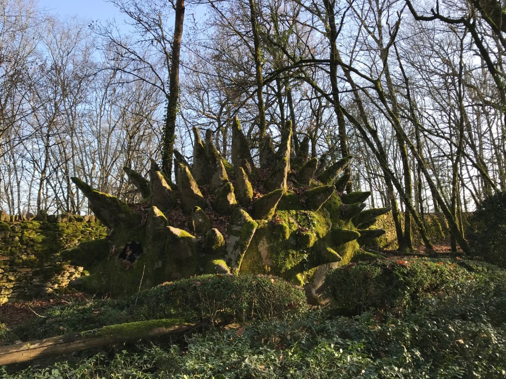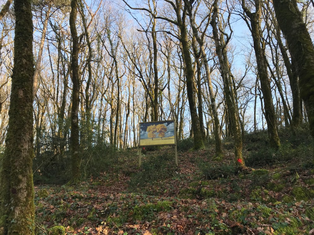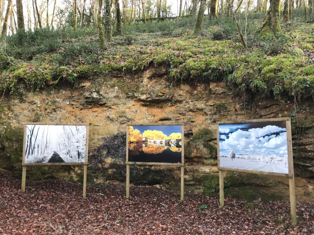 At first we thought these were photos of the garden in fall and winter … but no, they’re color-altered photos of trees with all their leaves. Perhaps the French feel a walk down a woodland path is too boring without art? Personally, I’m fine with just trees!
