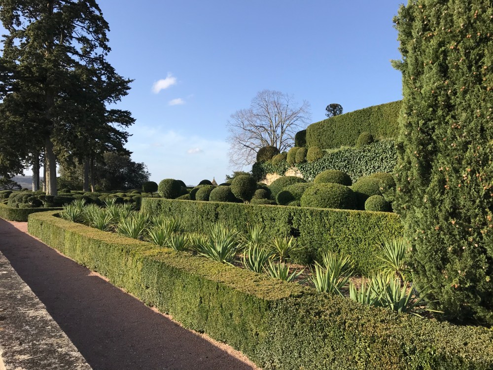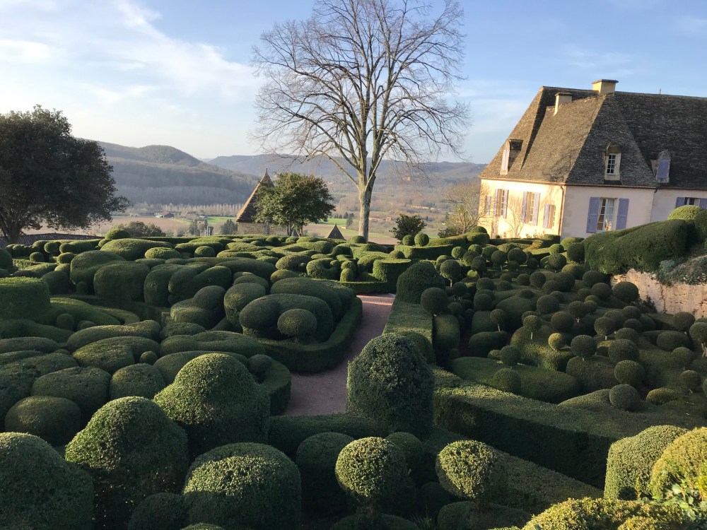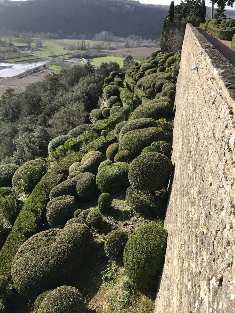 We repeated our hike to Vézac of a couple of weeks ago, but added on a visit to the gardens of Marqueyssac. These are up on top of a cliff, with fantastic views of the Dordogne valley.