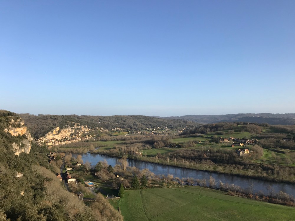 There’s a long walk along the top of the cliffs leading to an overlook of La Roque-Gageac. They’ve added a lot of things since we visited fifteen years ago – a Via Ferrata, rock climbing, and concessions. None, of course, were open at the end of November but we still really enjoyed exploring.