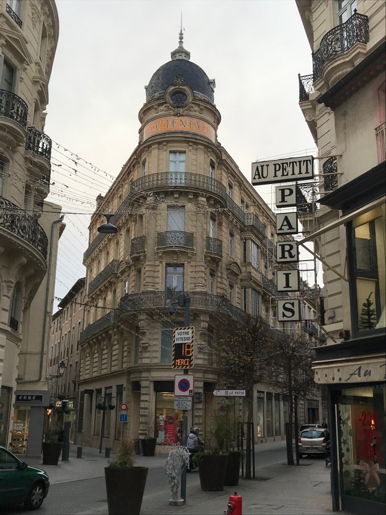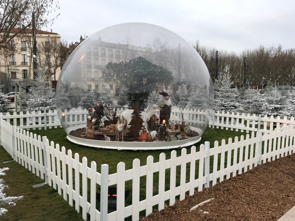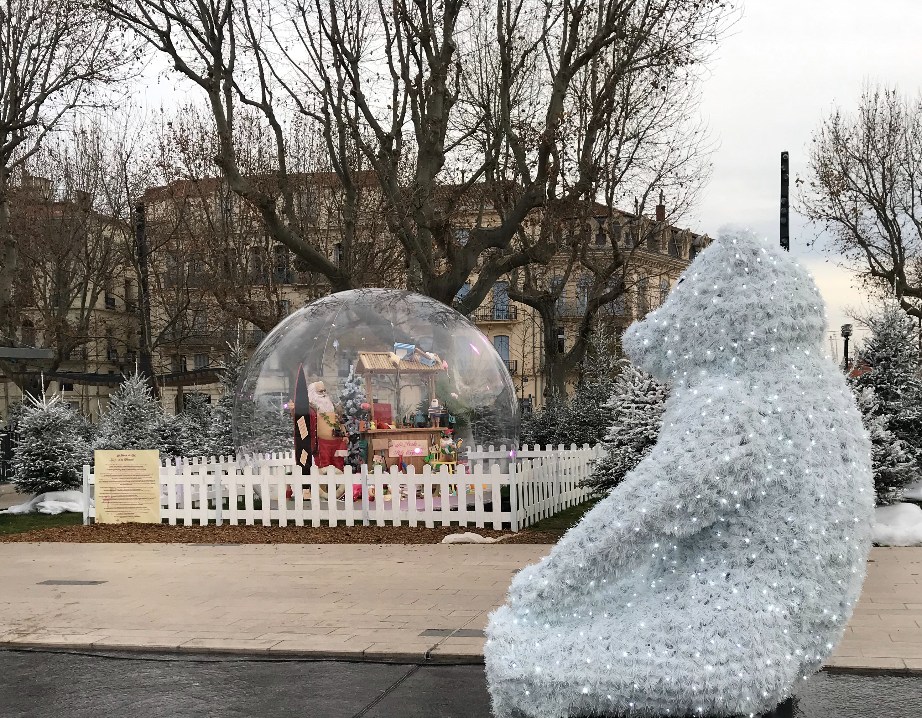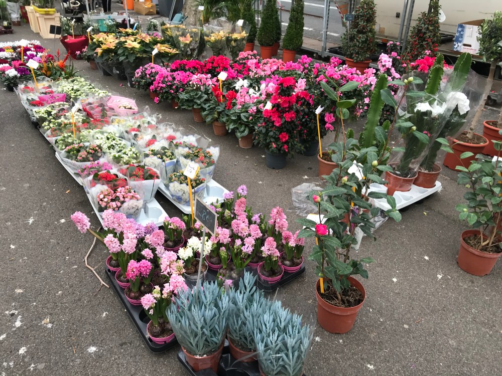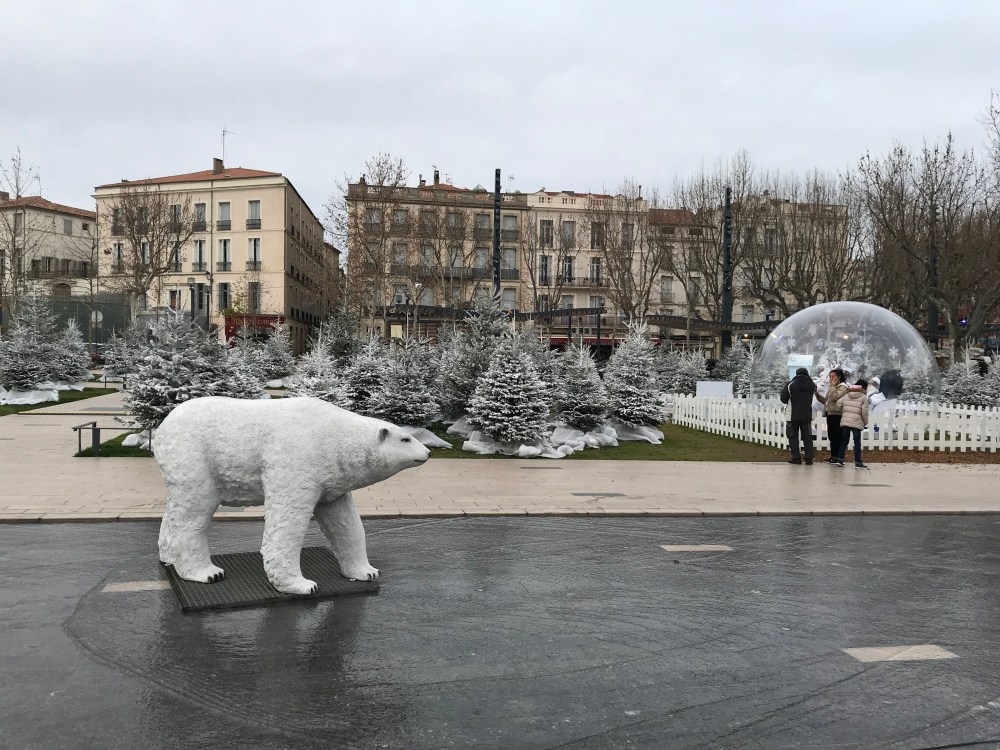 We thought the Christmas market in Narbonne was pretty large – Béziers’ is probably three times as big, with many more carnival games of skill (or luck). And, oddly, a large number of flower vendors…