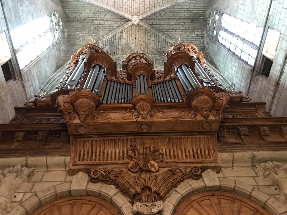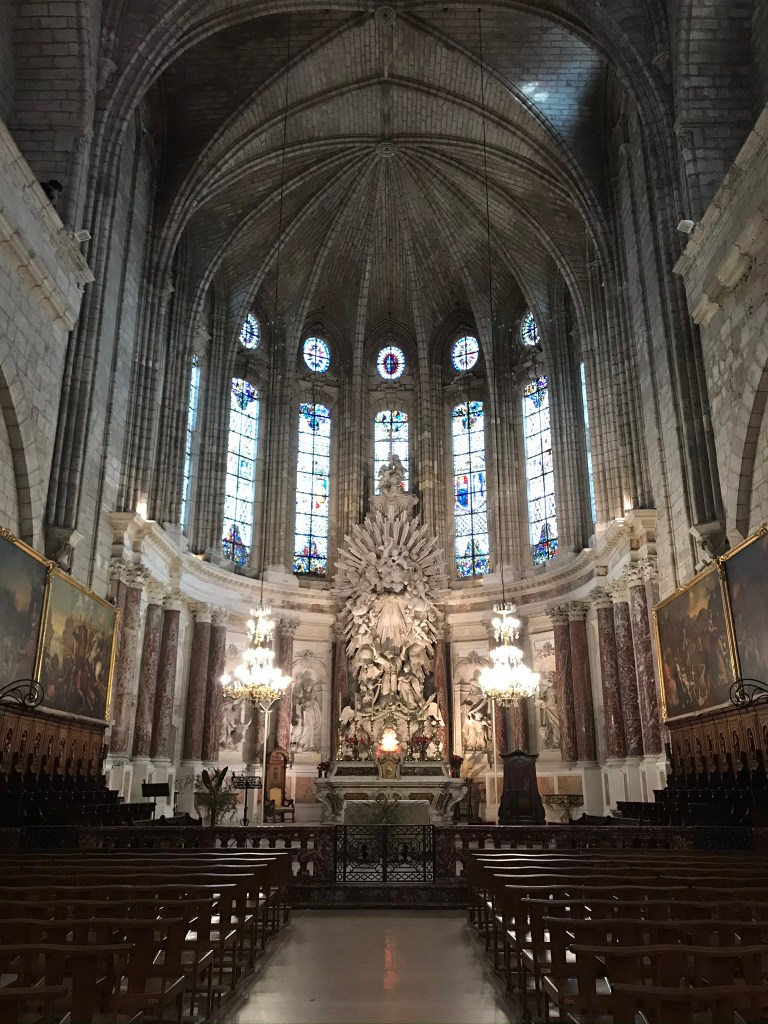 The cathedral in Béziers is particularly beautiful inside. It has gorgeous ornamentation, and, most importantly, you can actually see it all. We’ve been in so many churches where you’re peering into the darkness trying to see what the subject of that painting is… This was the best-lit cathedral we’ve ever been in, I think.