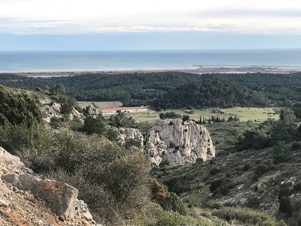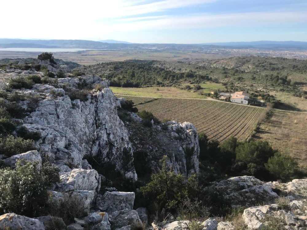 From the top of the massif, there are beautiful views to vineyards below and to the Mediterranean.