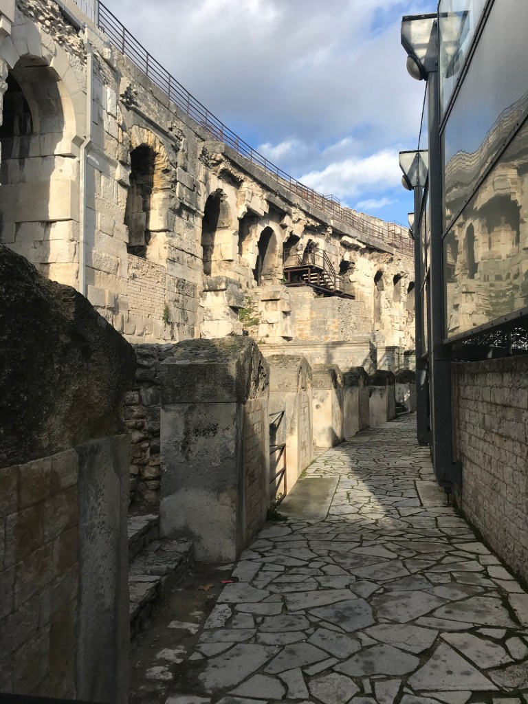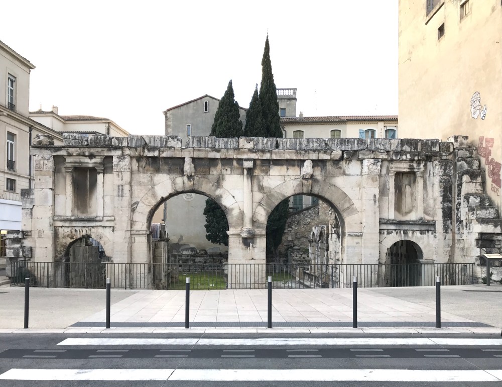 Across from the church was yet another Roman ruin – one of the two gates into the old walled city. The rest of the walls have been “repurposed,” with the stones taken away to make other buildings. It’s amazing the arena didn’t suffer the same fate.
