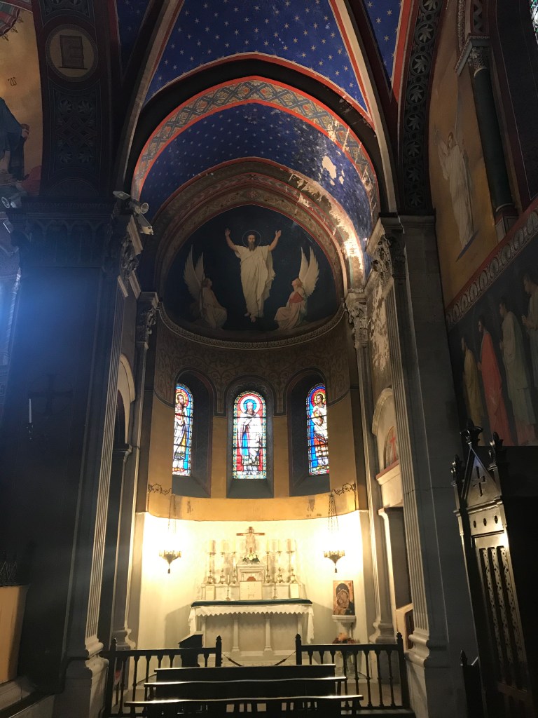 This church, the Église Saint Paul, had some beautiful paintings (frescoes?), but some serious water damage. Definitely a design flaw- there was matching damage on either side of the nave.