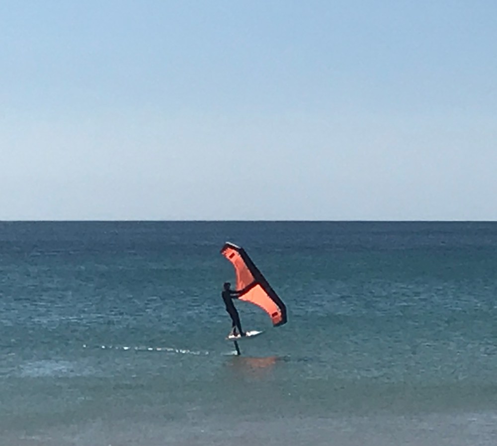 A day at the beach showed us yet another cool water+wind sport – foiling on a board with a hand-held inflatable wing. What will they think of next?