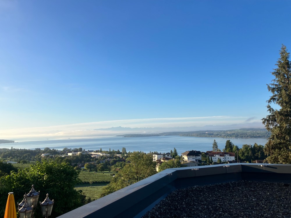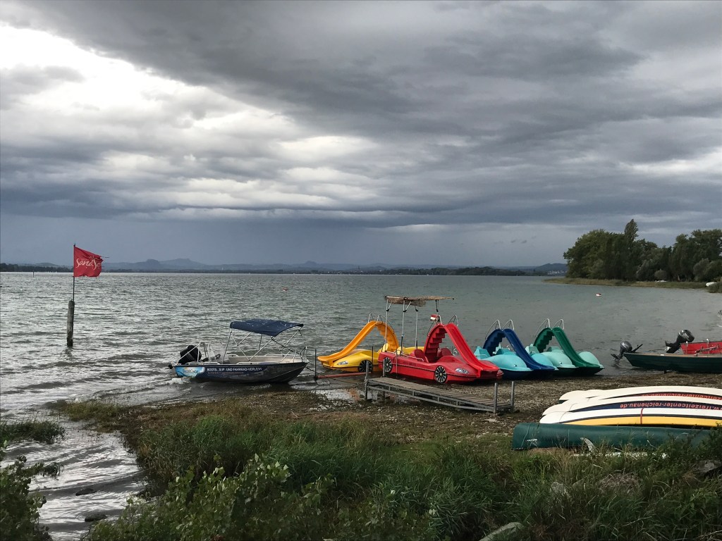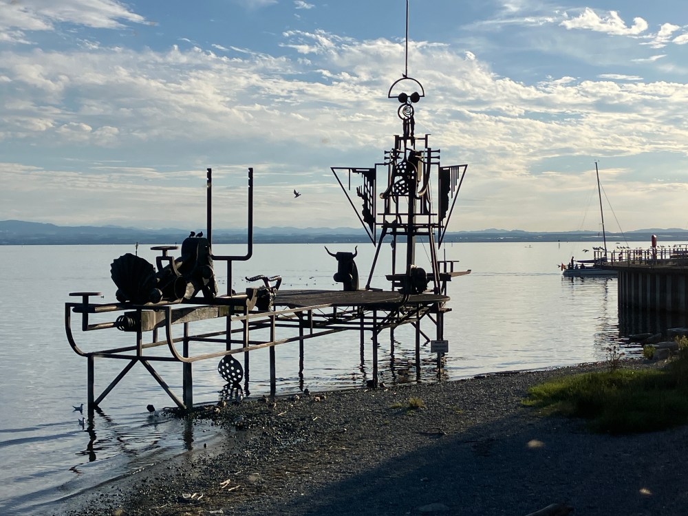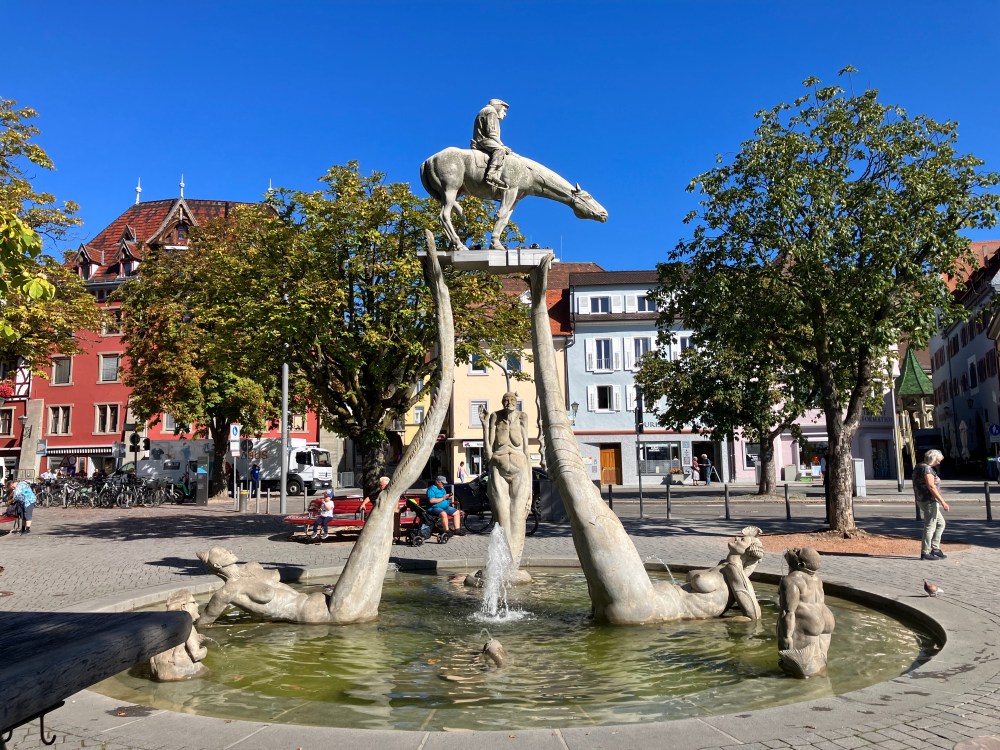 We spent the next night at a schwanky hotel in Überlingen, but it was a struggle to get there. About two km away, my rear tire went flat. We pulled out the spare inner tube and toolkit, opened our travel info book to the repair page, and read that if had an e-bike (we did) or disc brakes (we did), it wasn’t recommended that we change the tire ourselves. Instead we should call one of the bike shops listed. We called the only one in our town … and it was out of business. After calls to the emergency help line and a visit to a nearby bike shop that did not inspire confidence, we walked the (heavy) bikes, mine with the flat, up, up, and up to the hotel. (This was, of course, the only night our hotel was not in the center of town.)