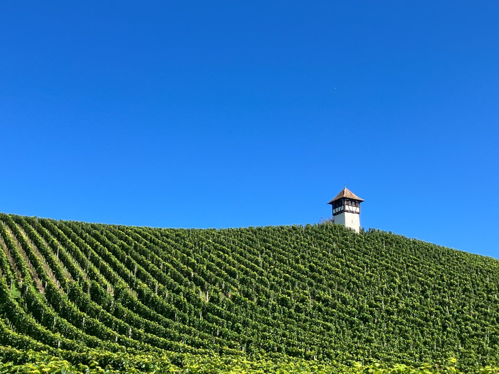 We biked past apple orchard after apple orchard, then many vineyards right on the slopes down to the lake – presumably taking advantage of the microclimate on the south-facing slopes. Little apple stands were everywhere – catering to all of us bikers. We bought some newly-harvested apples – they were delicious!