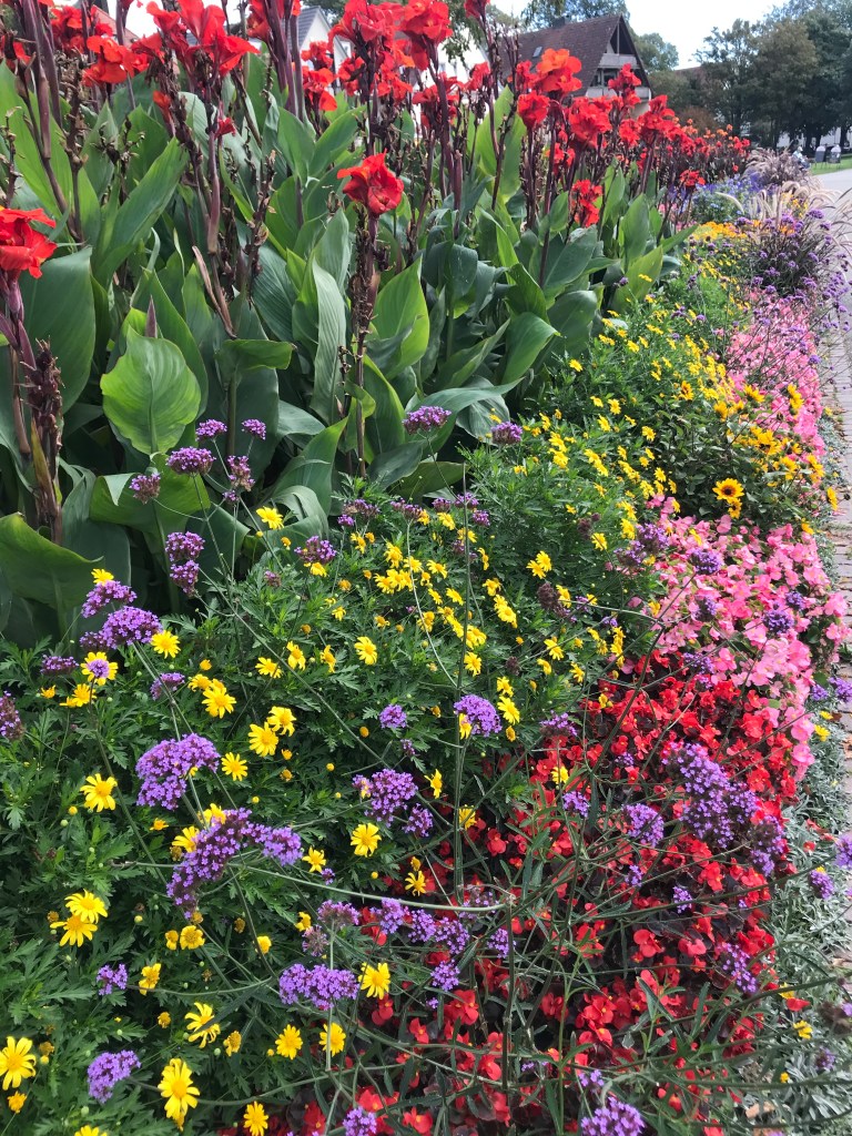 We really enjoyed all the art and flowers we saw along the way. Not only were houses bedecked with windowboxes, but the public spaces in every town were full of flowers.