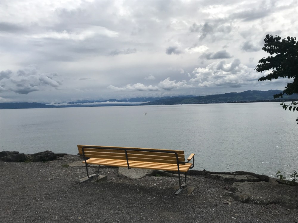 We spent the night in Bregenz, Austria. The next day was a miserably cold, rainy and windy ride to Arbon, Switzerland – even M, the picture-taking madman, wasn’t inspired to take any photos. At one point we stopped for a bathroom break and I was able to wring a bunch of water out of my ankle socks. If we do this again, we’re buying shoe covers!