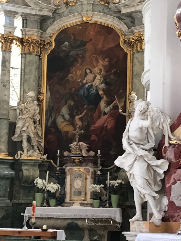 in addition to the dahlias, we also saw (from the outside) the residence of the count who owns the island and (from the inside) the family chapel. It’s too ornate for my liking. Could they really have been focusing on God in this setting? Or were they just distracting themselves during the sermon?