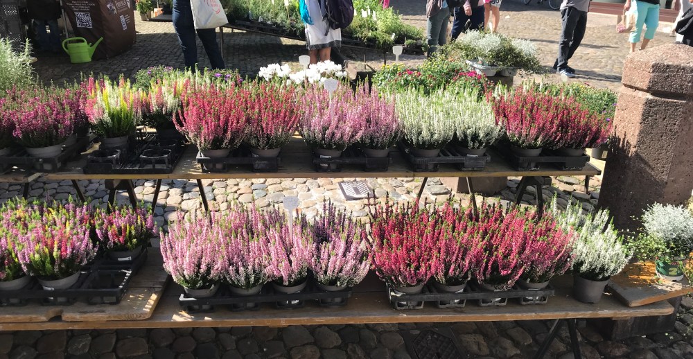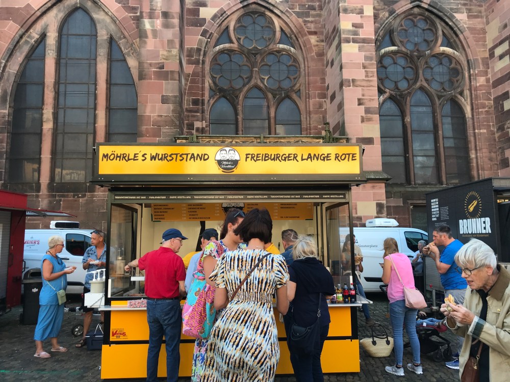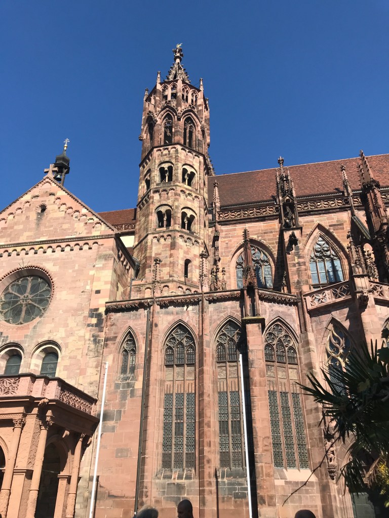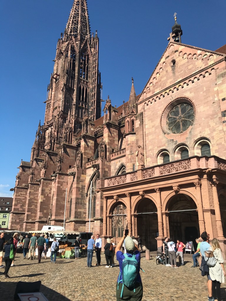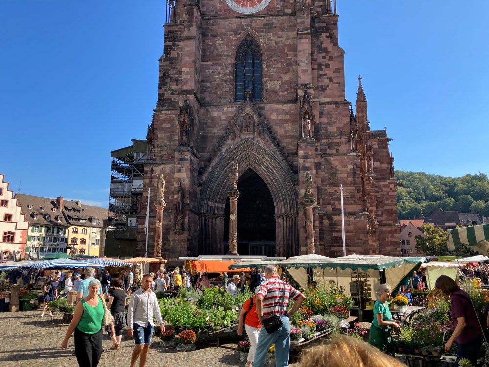 We did eventually bestir ourselves and use the free bus/train tickets the hotel gave us to visit Freiburg. We could tell we were getting closer to France when we found a French-style market surrounding the cathedral.