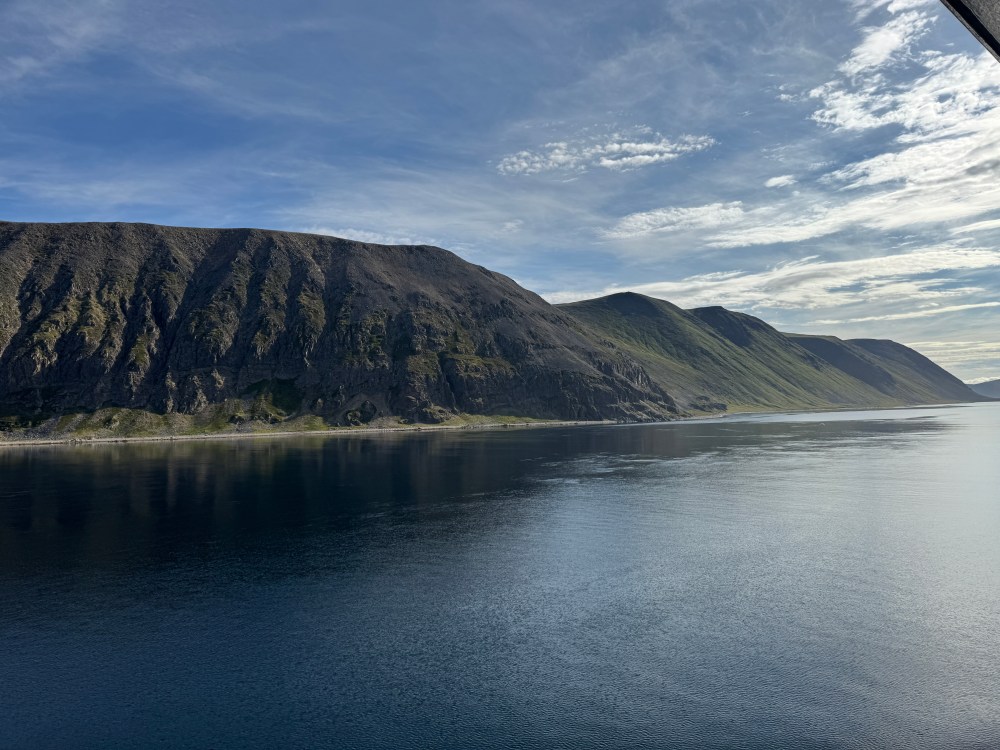 We passed our furthest north point soon after this excursion – above 71 degrees north. Then we headed a little south and east to Kirkenes, the midway point of our cruise, which is further east than Istanbul! As we came into Kirkenes, the Barents Sea was a tropical-looking blue. (The all-knowing Google tells us it’s due to phytoplankton.)