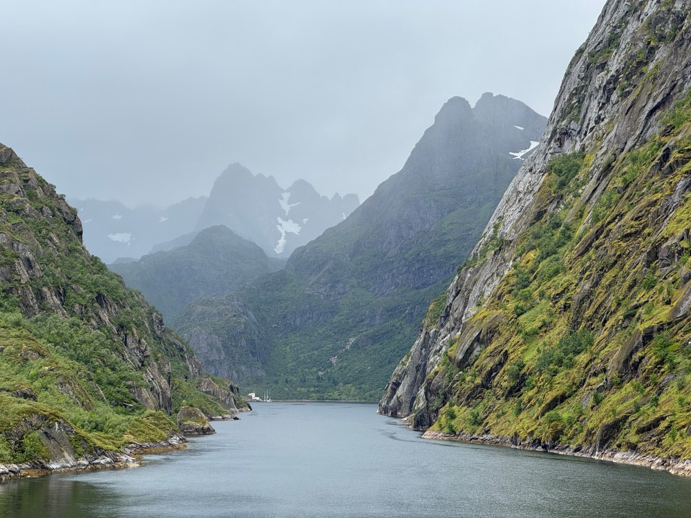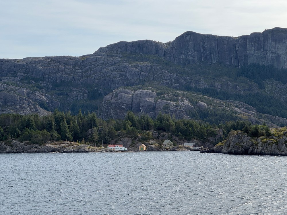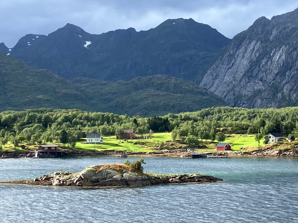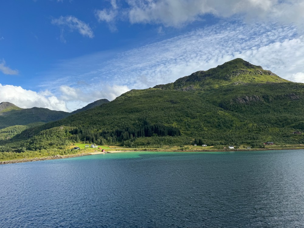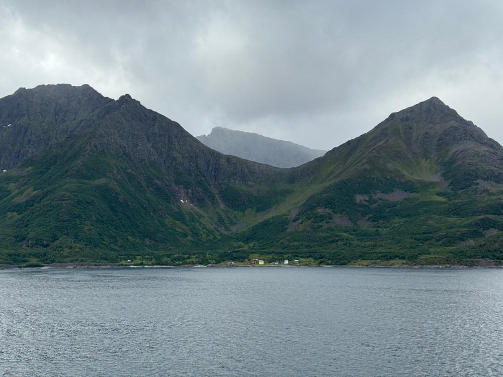 The weather wasn’t as good on our southbound trip from Kirkenes back to Bergen. But it was definitely what we now call “Norway weather” – changing every couple of minutes. Both of our southbound excursions were cancelled, one due to high winds, one due to needing to refuel unexpectedly (presumably also due to high winds and bigger seas than expected). But that still left us with plenty of great views – usually with dramatic clouds.
