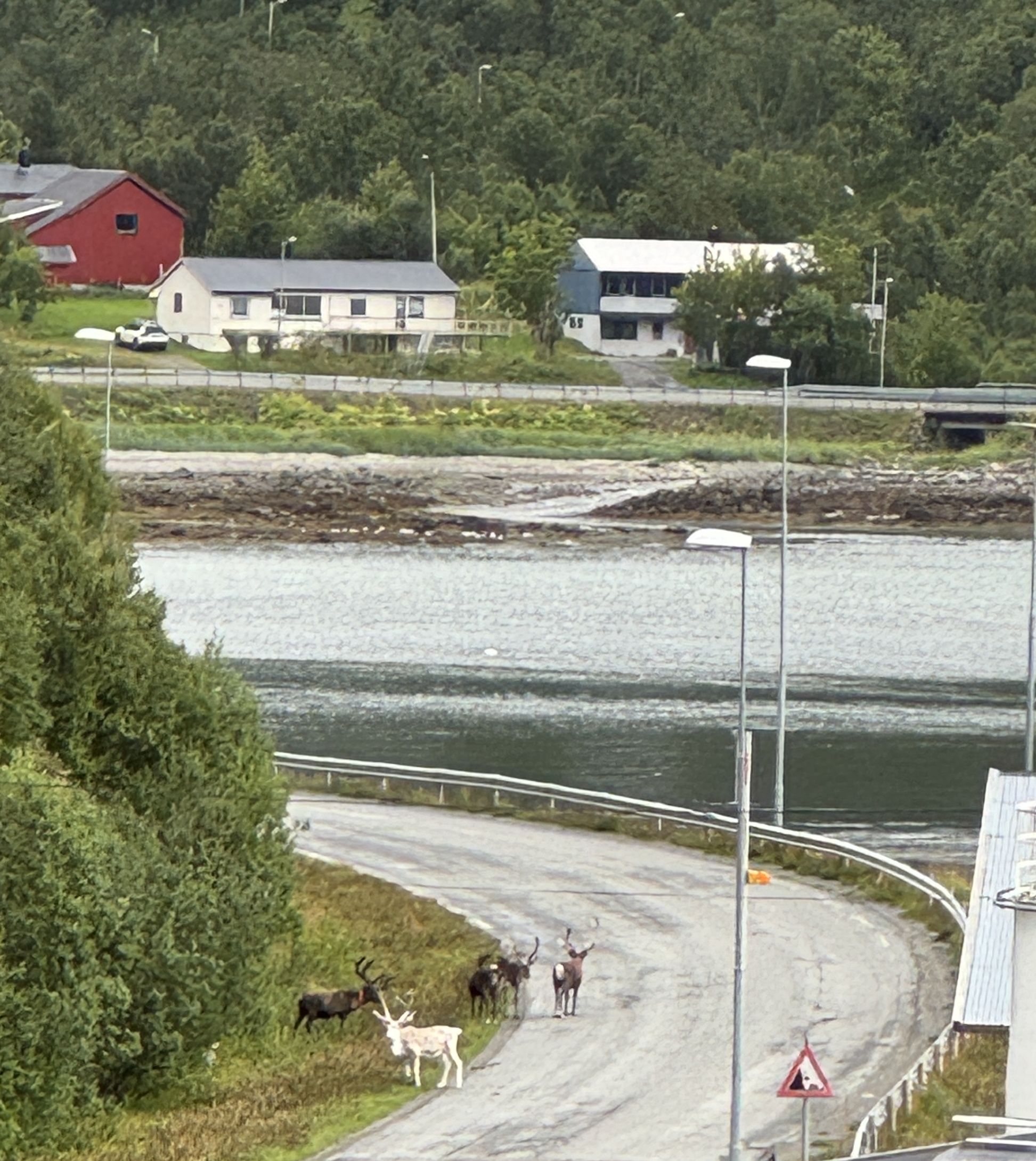 Who needs excursions, anyway? Just look out while we’re in port … and see reindeer walking down the street: