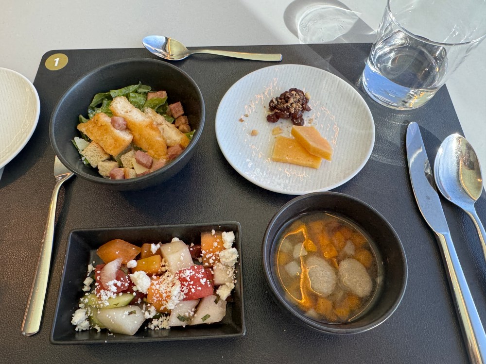 We liked everything about this cruise – the ship, our cabin, the incredible scenery, and something I haven’t talked about – the food! Unlike most cruise ships, they don’t have buffets. I’ve never been a fan of buffets – or the food they waste. Lunch is a selection of 20 or so small plates; you can order as many as you like. Dinner is a three-course meal. The menu changes every three days, and as you’d expect there are many fish options. Everything we ate was excellent, far better than the food we had on the only other cruise we’ve done (Celebrity in the Galapagos).