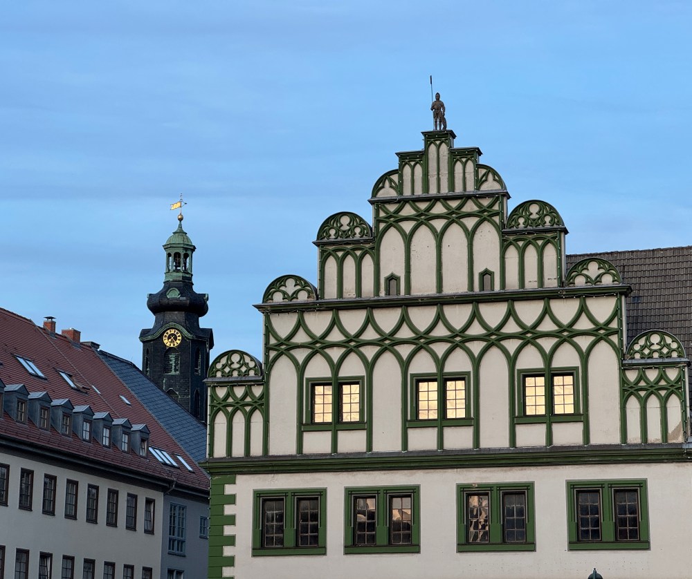 We’ve fallen in love, and our love’s name is Weimar. M said several times he could imagine living here. We would, of course, have to study up on Johann Wolfgang von Goethe to fit in, because it’s Goethe everywhere here. Goethe National Museum, Goethe’s garden house, Goethe’s family house, … Even things that at first glance seem unrelated, like a restaurant named Gretchen, turn out to have a Goethe connection. (She’s the main female protagonist in Goethe’s Faust.)