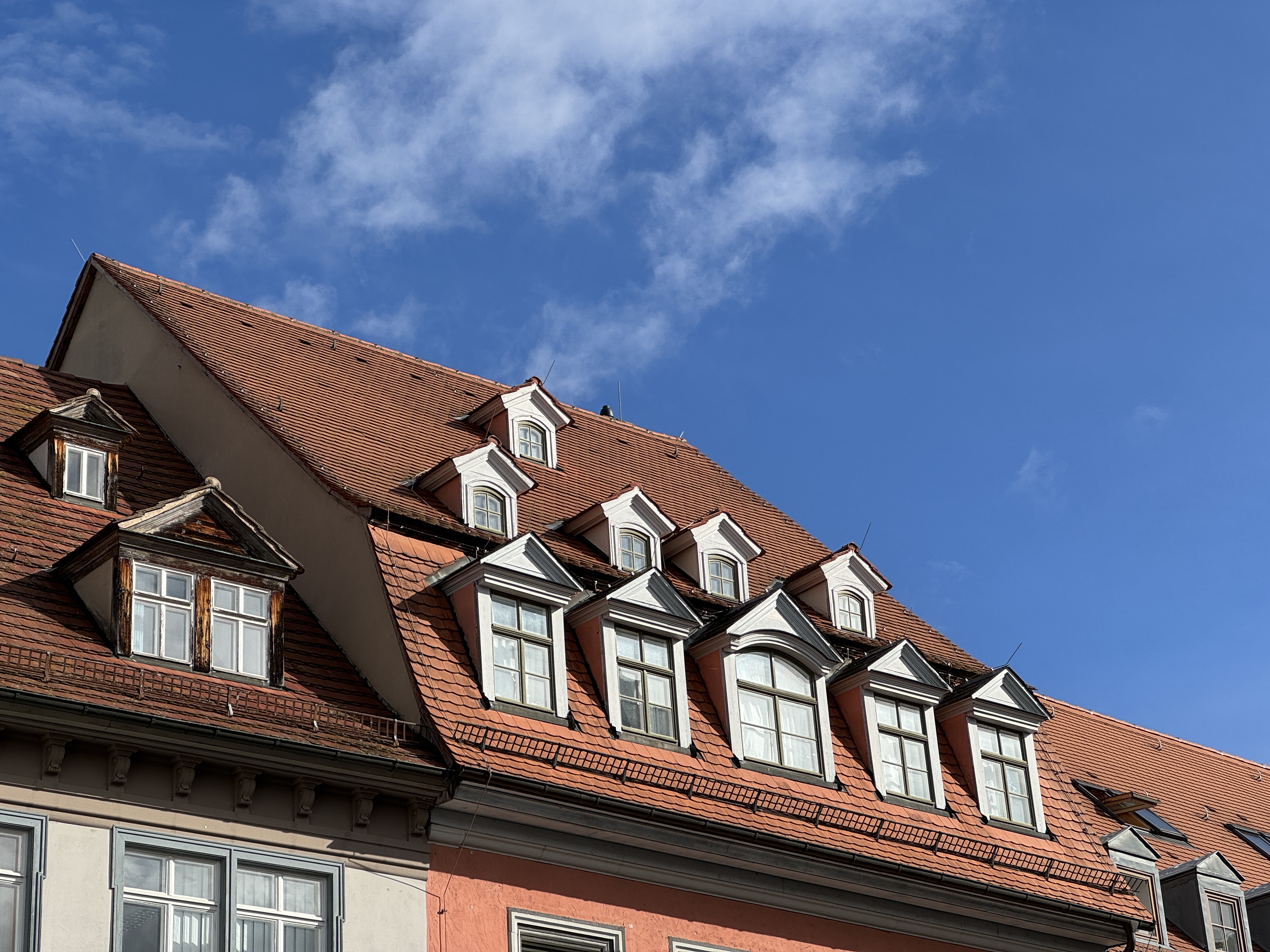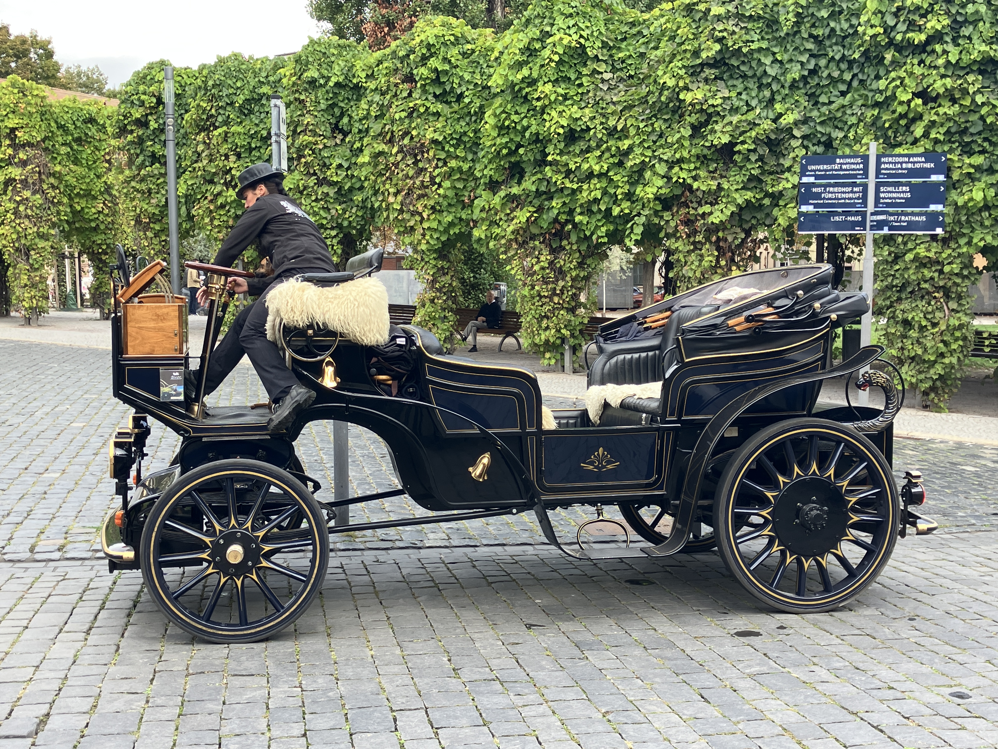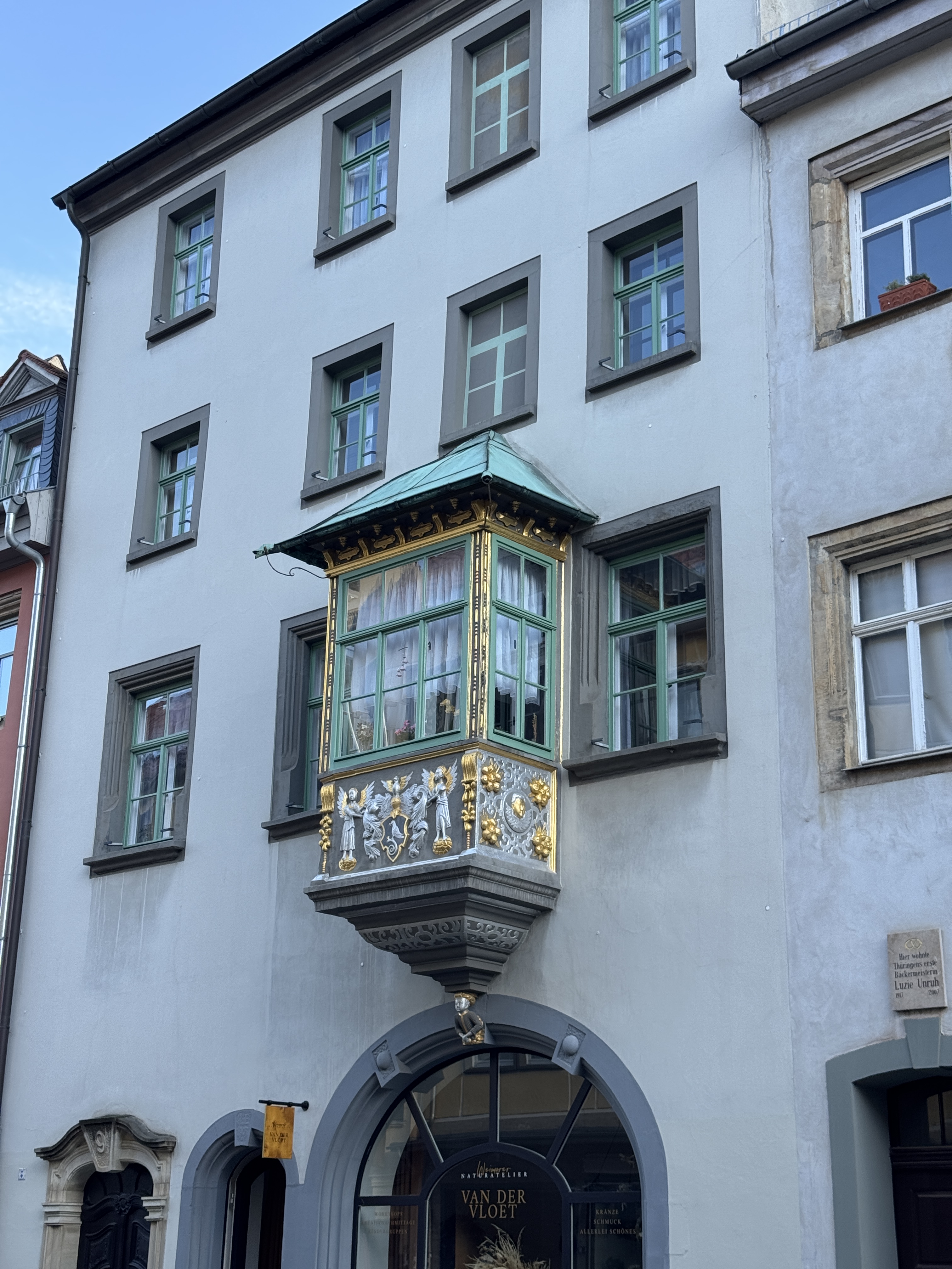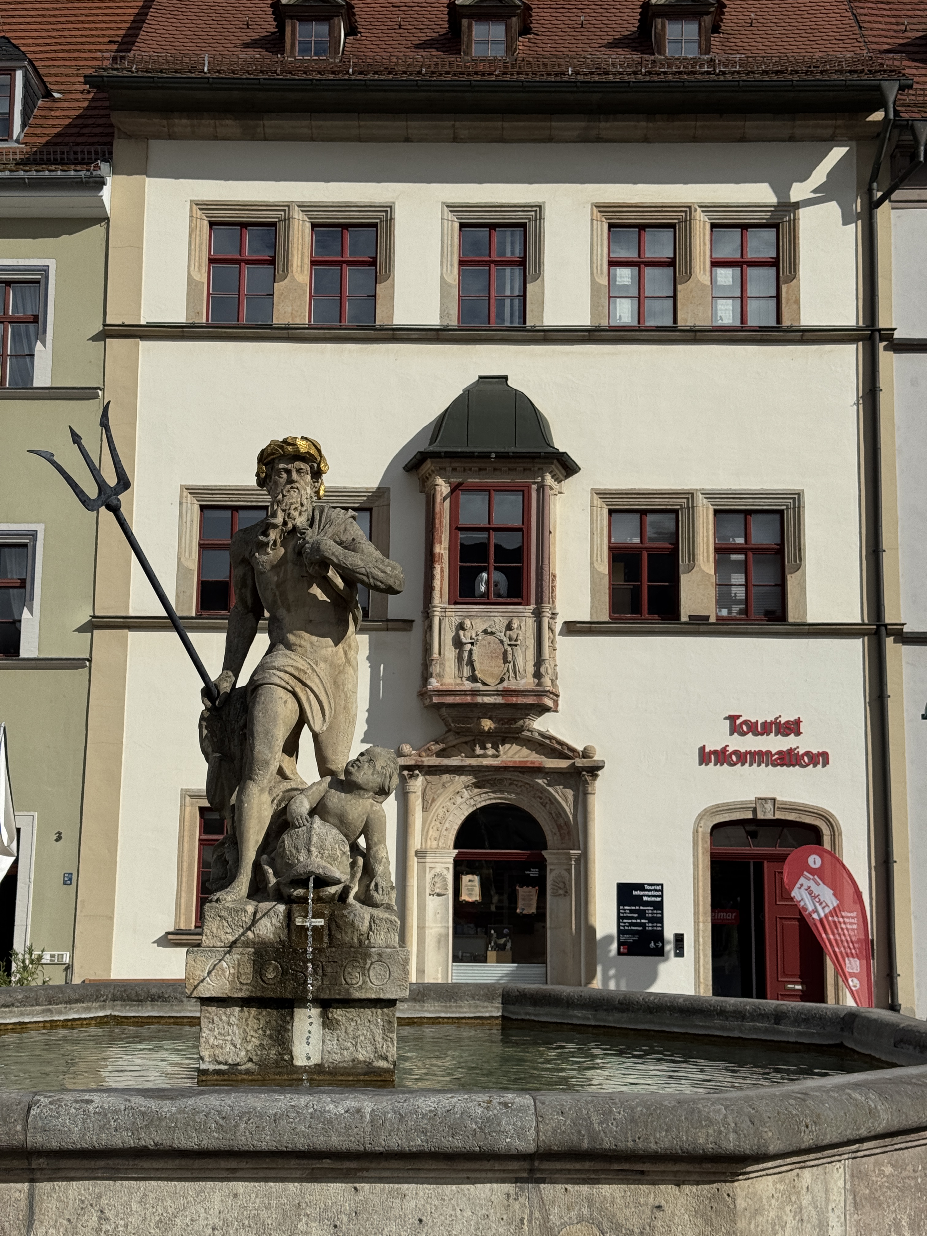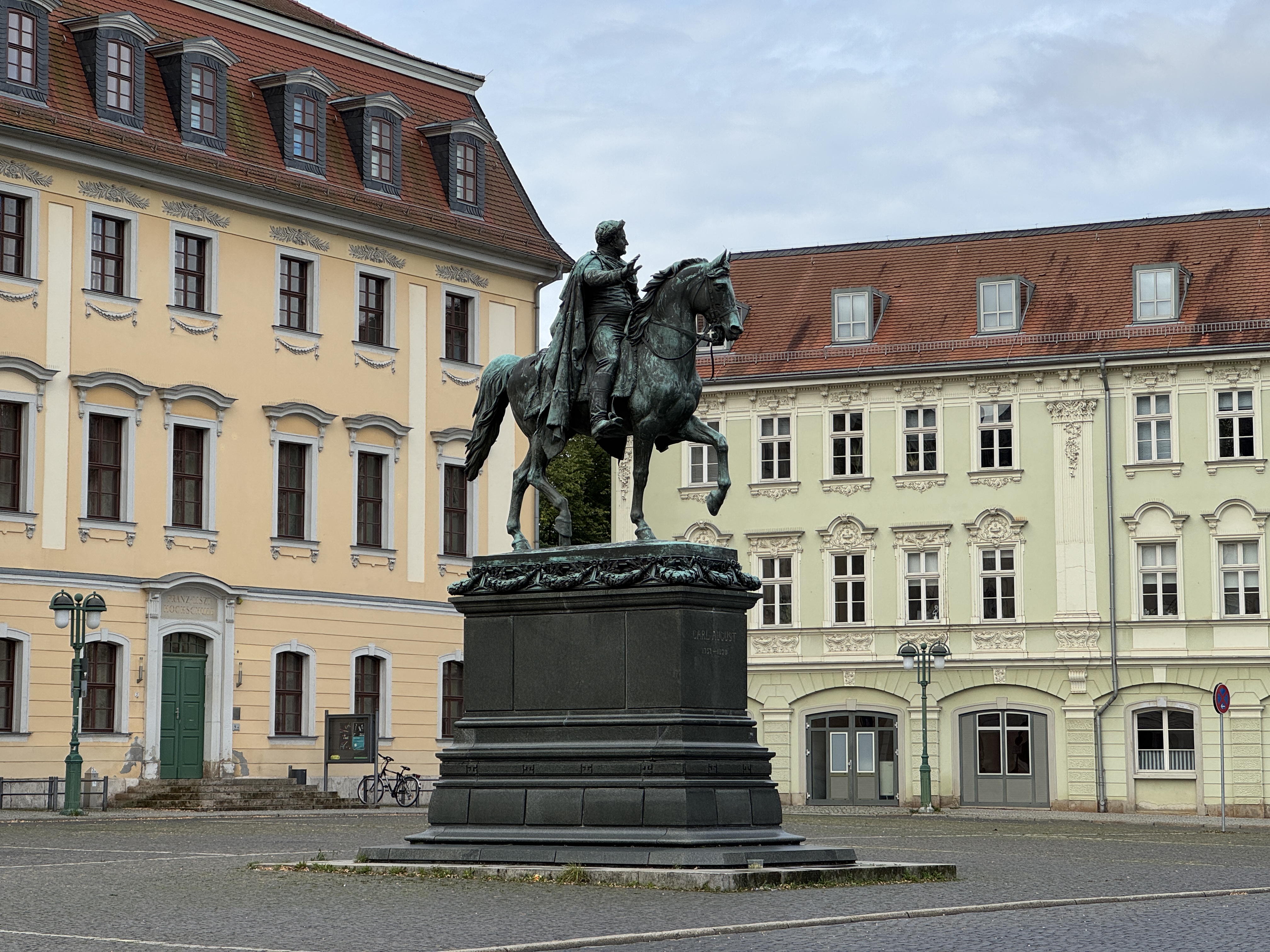Our first impression set the tone for our time in Weimar. Beautifully preserved (or perhaps restored?) buildings and cobblestone streets fill the old town. (We have a love-hate relationship with cobblestones – great for ambience, awful for luggage with wheels.)