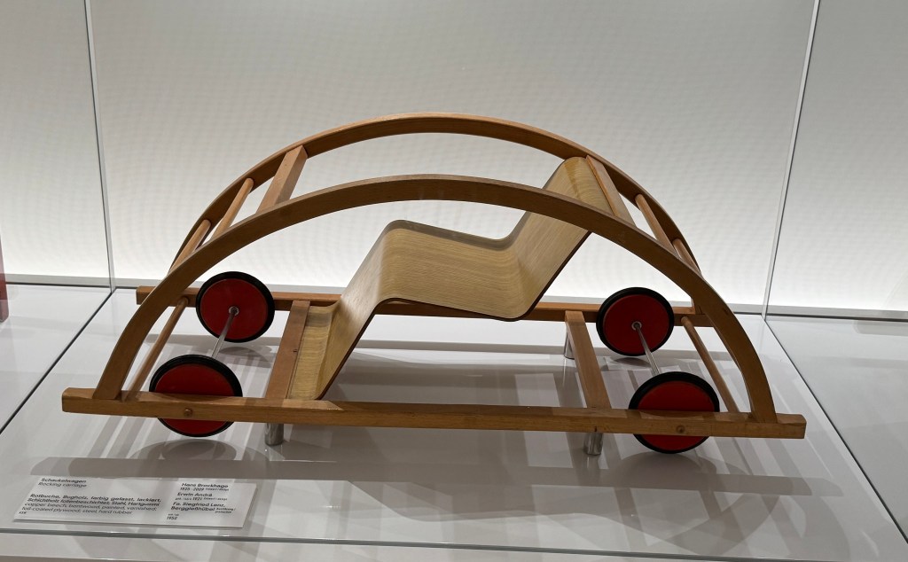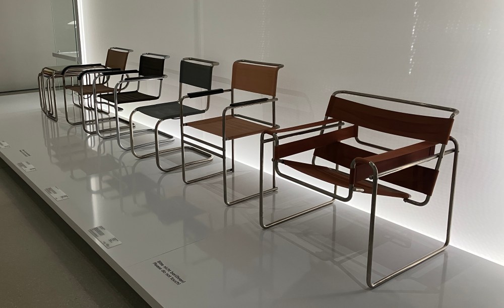 Beyond the products, we found the Bauhaus teaching methods interesting. Classes were offered by masters in many disciplines and many refused to teach design theory. They wanted the students to experiment and figure things out on their own. Paul Klee was an exception. I particularly liked this bit of his teaching: “How does a point become a line? When it takes a stroll, it becomes wavy, but if it marches with purpose, it means business and straightens into a line.”