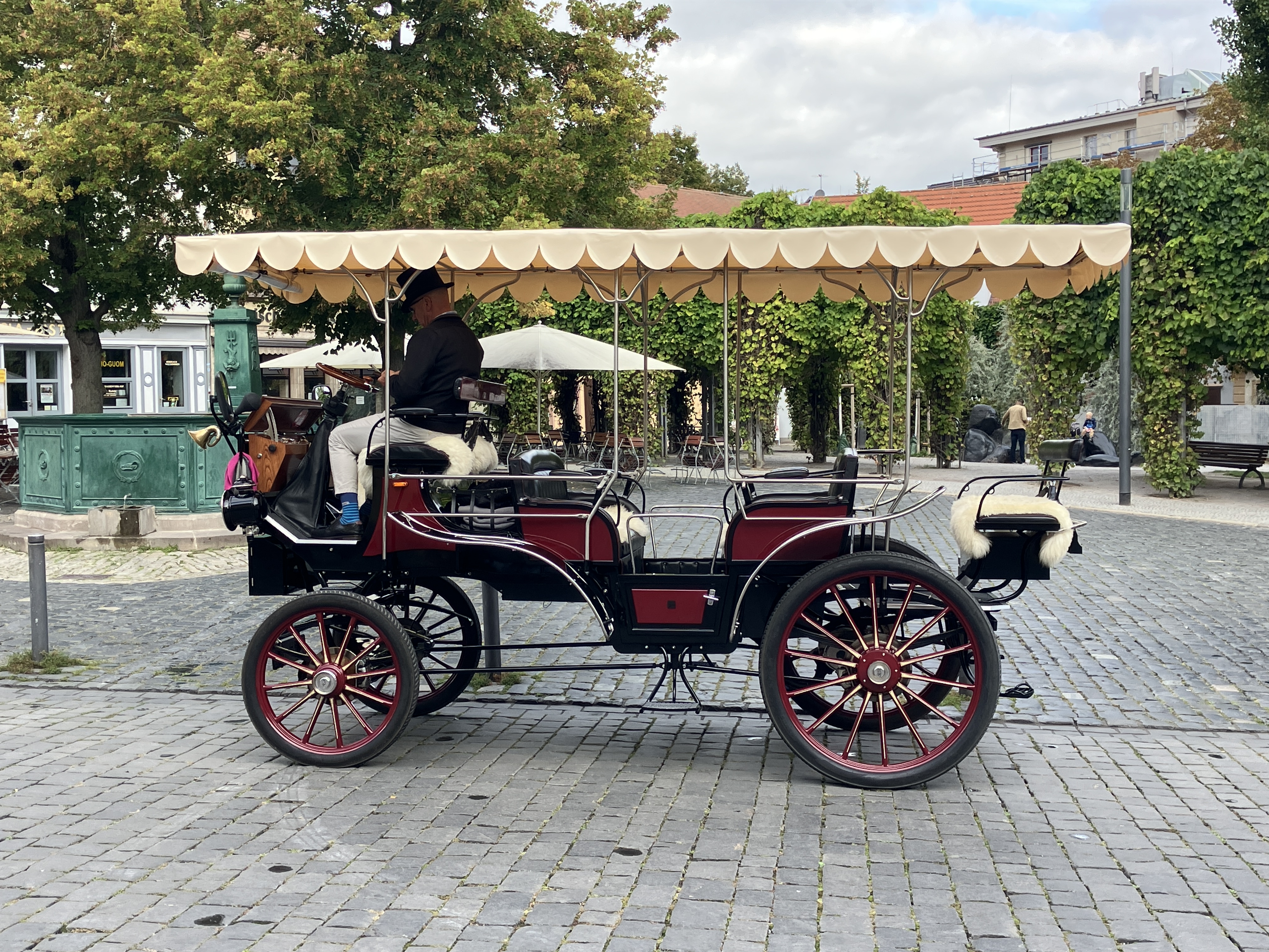 Back out on the streets, there was the usual mix of old and new – plus horseless carriages!