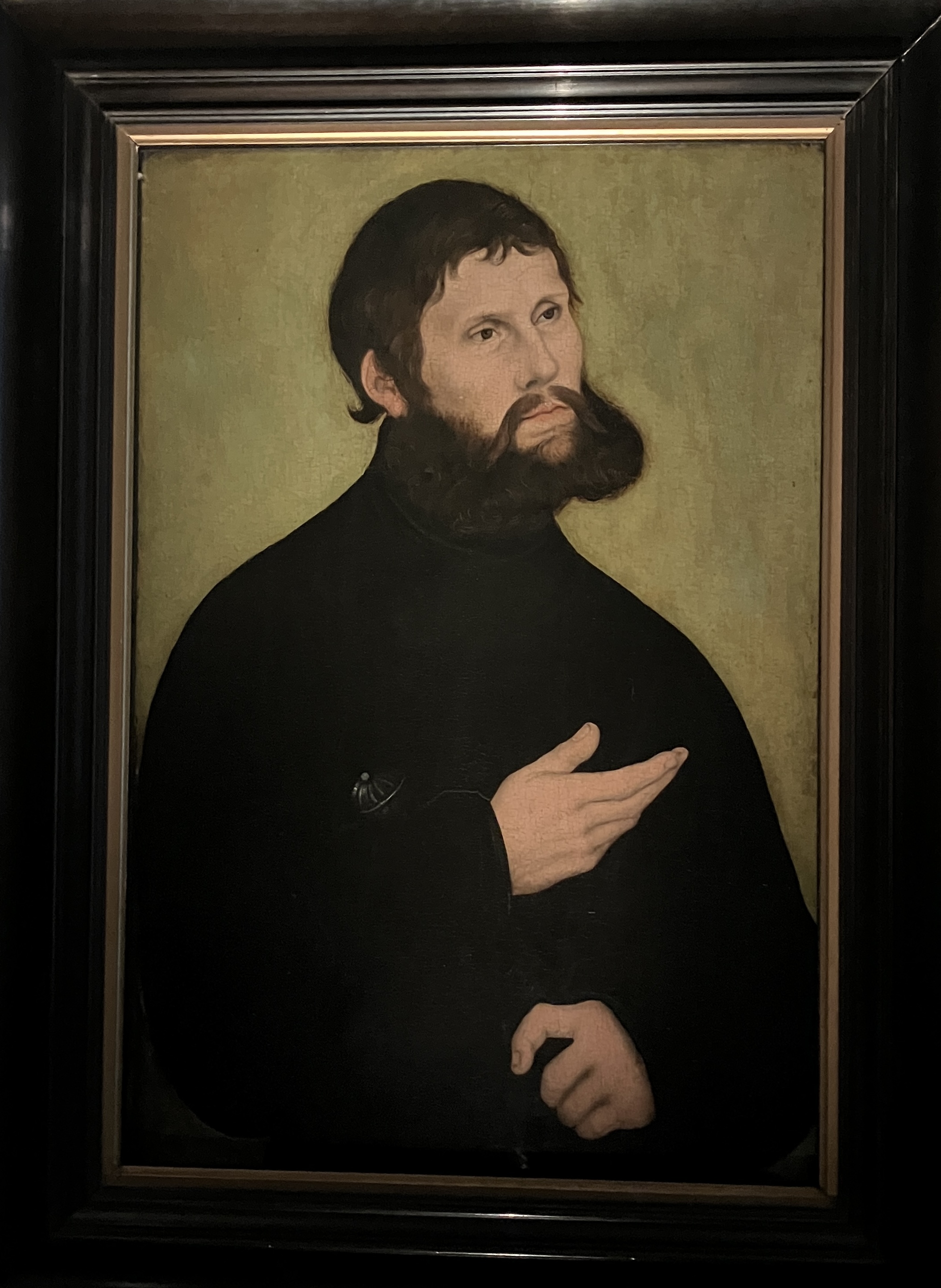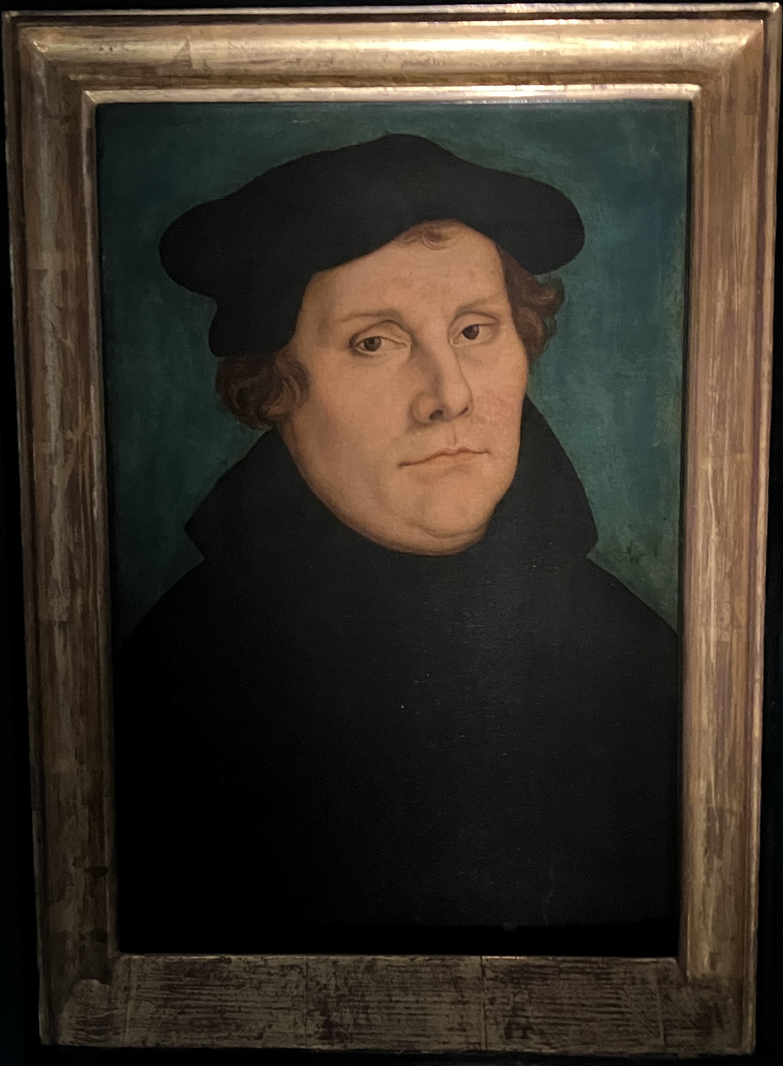 The Cranachs were contemporaries of Martin Luther and painted him several times. There’s quite a contrast between an early painting, where he looks like an ascetic firebrand, and a later one, after he’d stopped being a monk and married a former nun. There he looks more like a prosperous bourgeois.