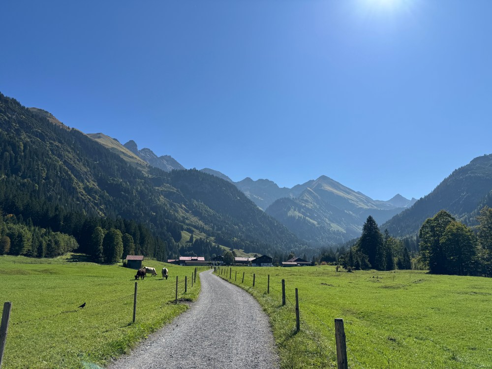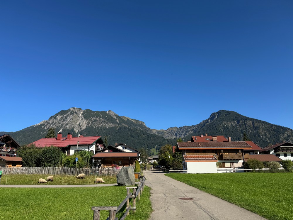 As we got closer to Oberstdorf, the landscape got hillier and greener, the houses grew stouter with longer eaves and lots of flower boxes, and cows were everywhere. But it was still a surprise how quickly the Alps spring up, with Oberstdorf cradled among them. On our first visit, we arrived by car and felt the same excitement as the mountains appeared. This time I think I was more excited, because now I know just how great Oberstdorf is!