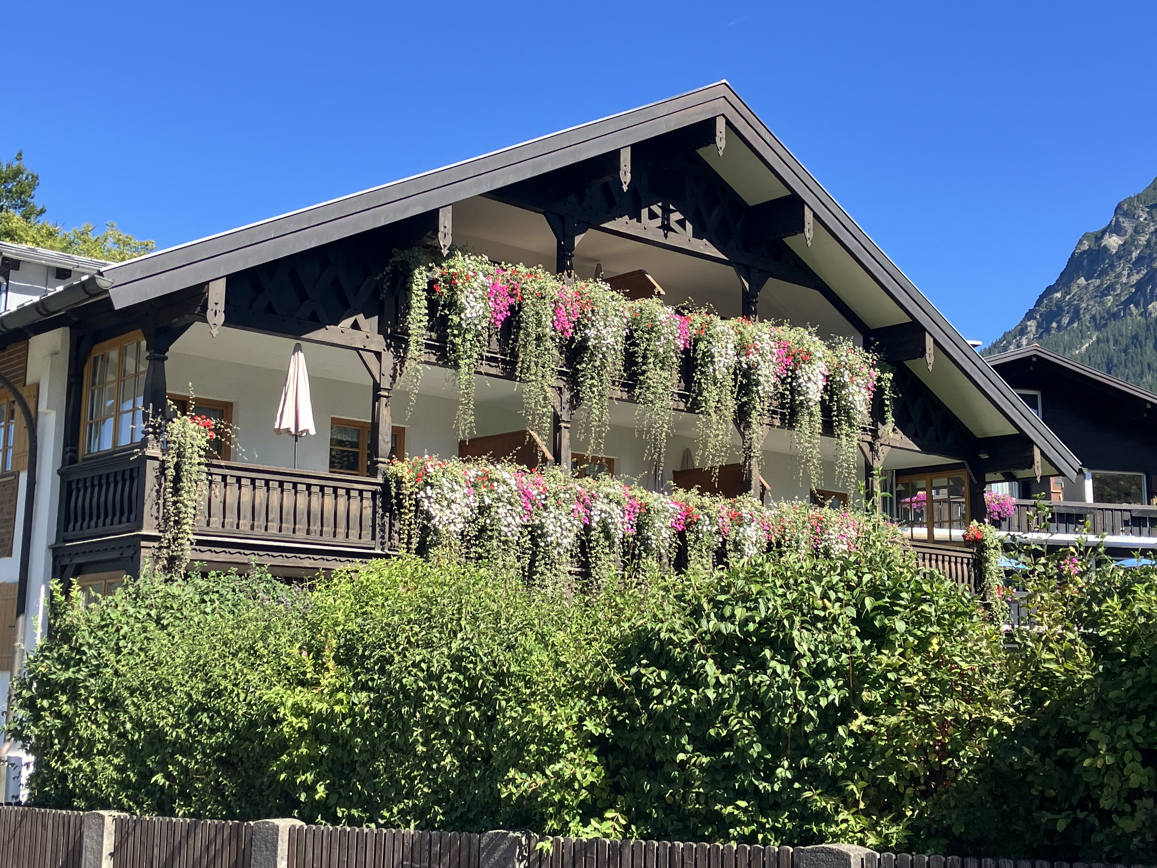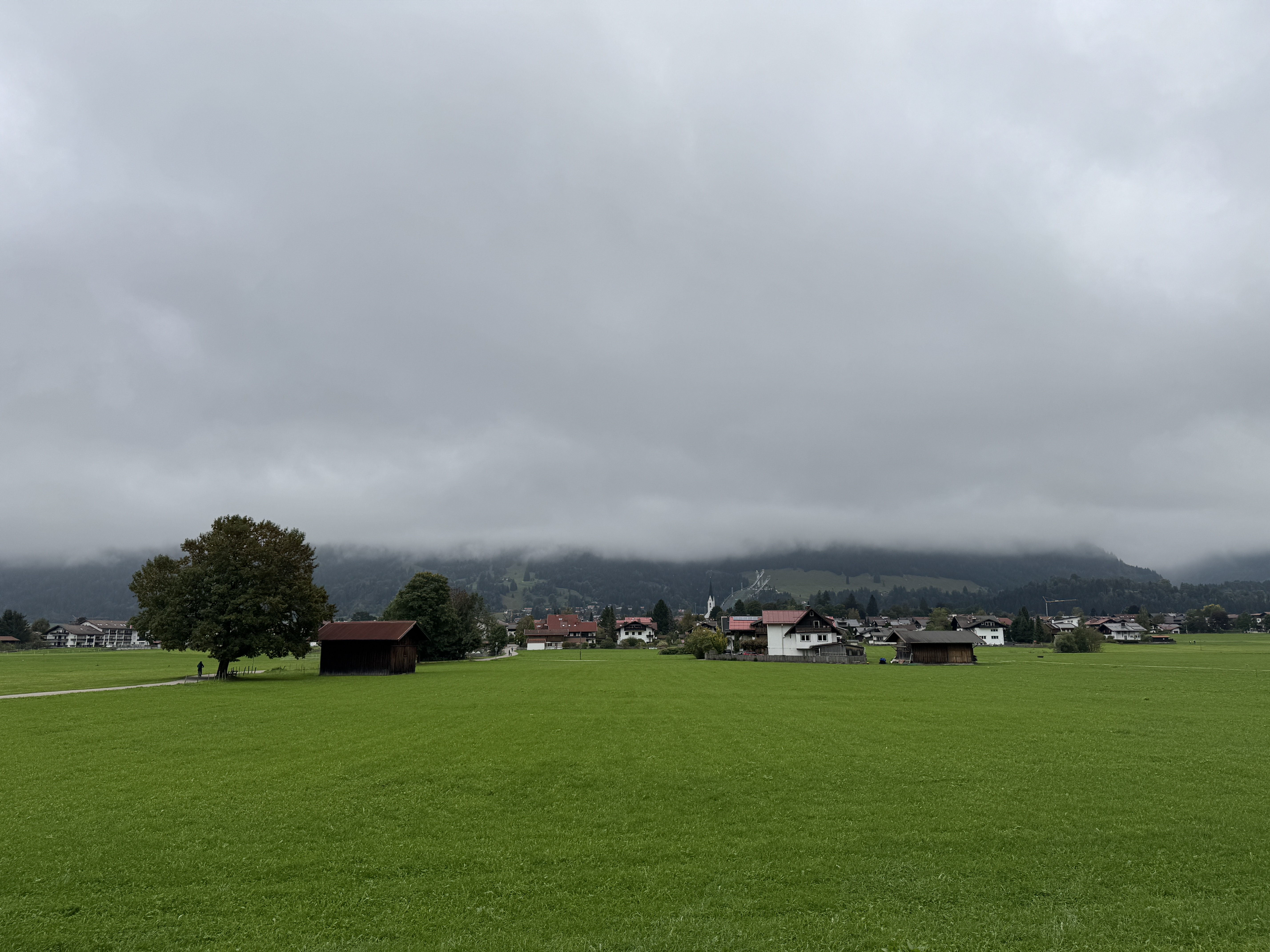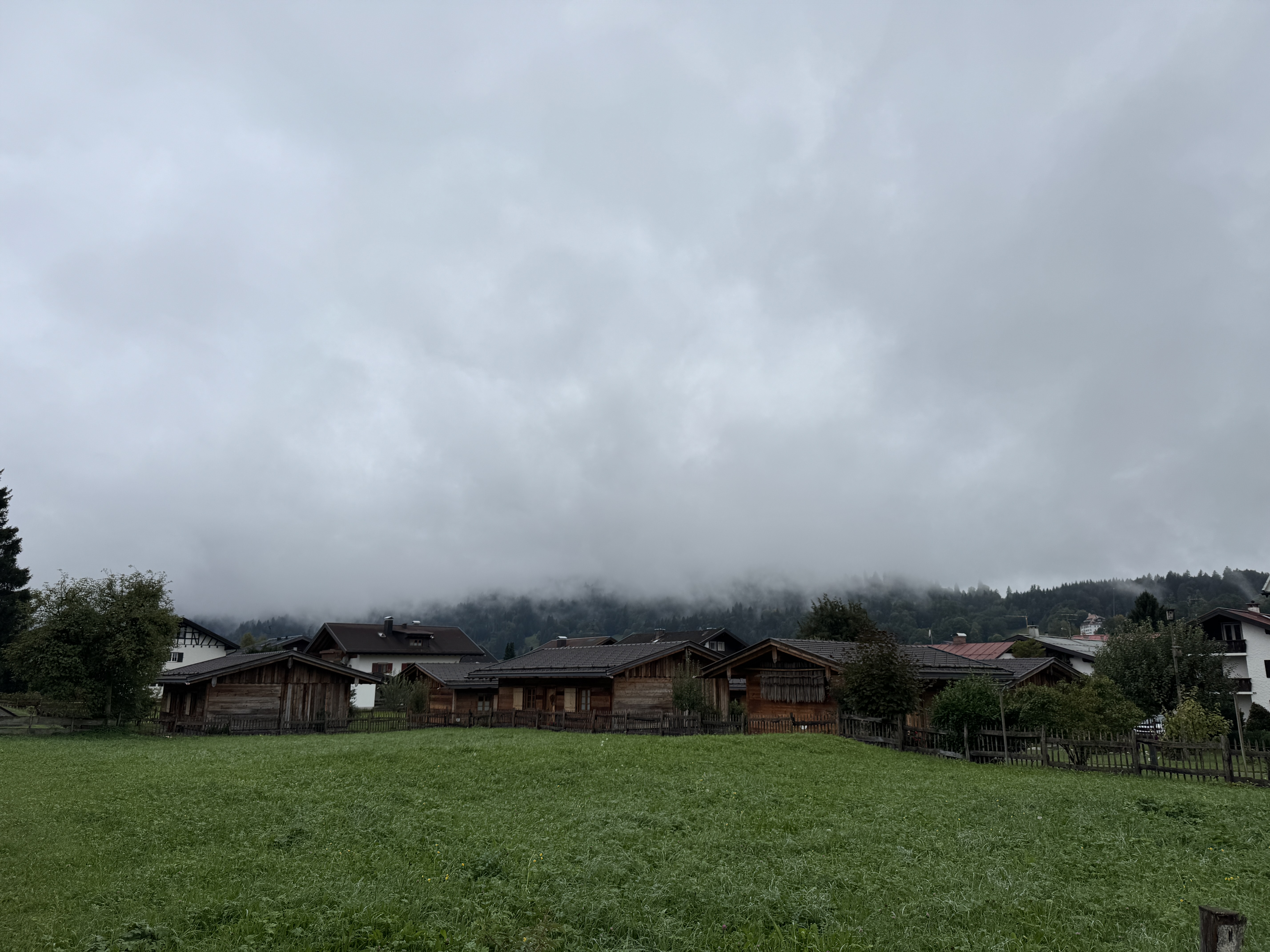 We had a ginormous meal (aka American-sized portions) at a restaurant partway down the mountain, and talked about places to hike nearby. Alas, it wasn’t to be. The weather closed in for the rest of our stay, with the clouds obscuring the views and frequent rain. We could have coped with the rain, but why hike with no view? We contented ourselves with walks around Oberstdorf. And we were very lucky we got here when we did and not four days later!