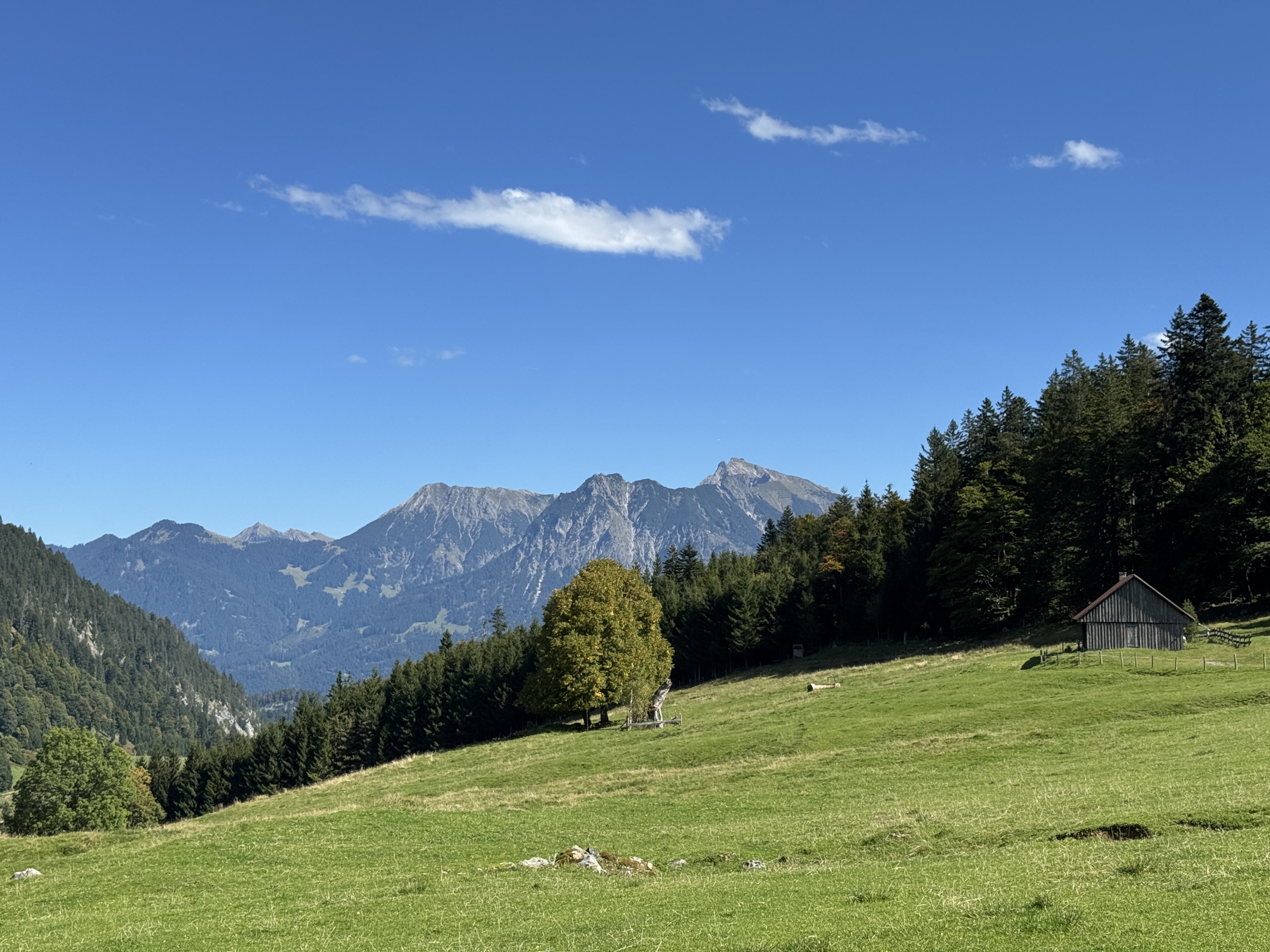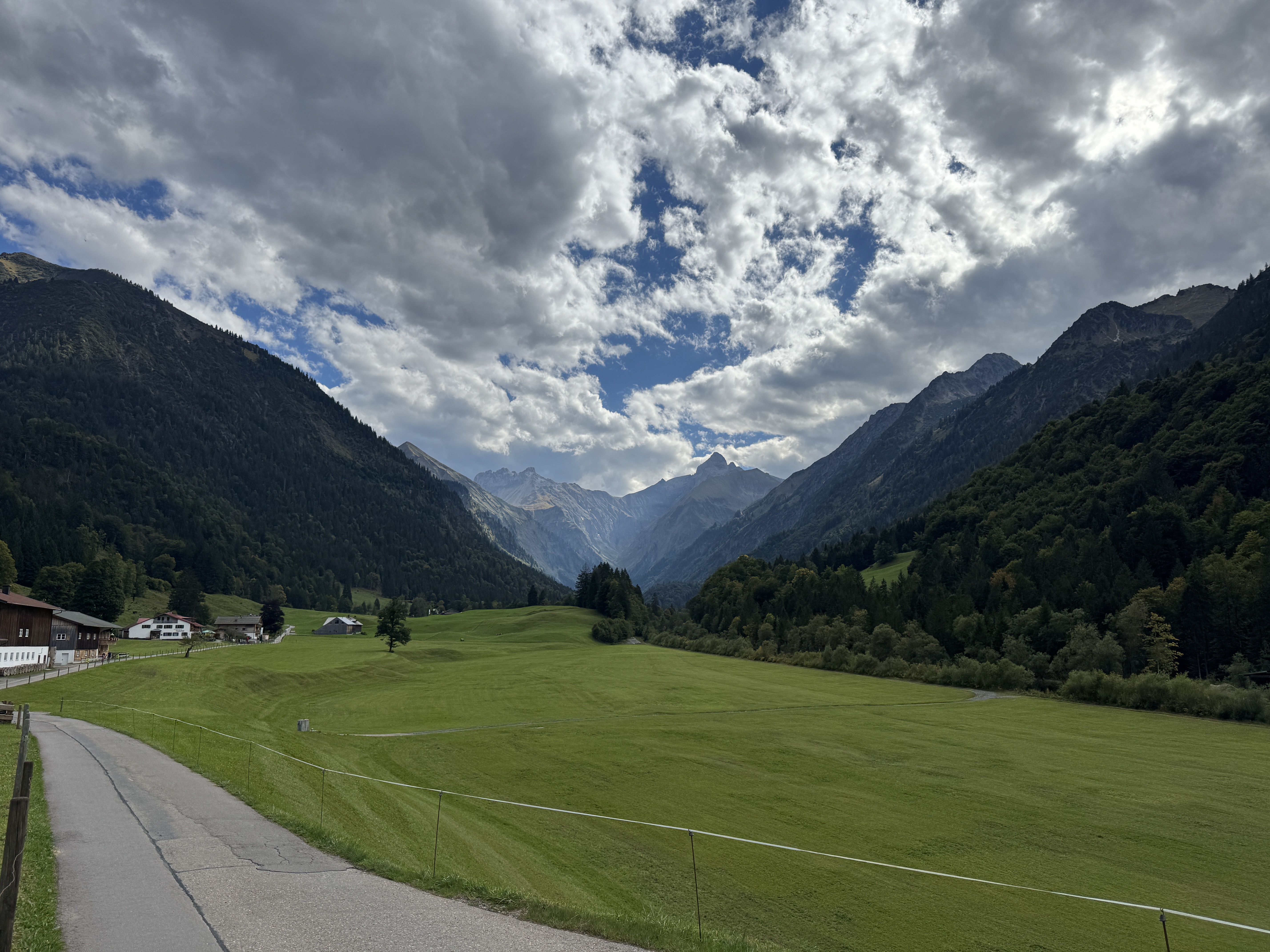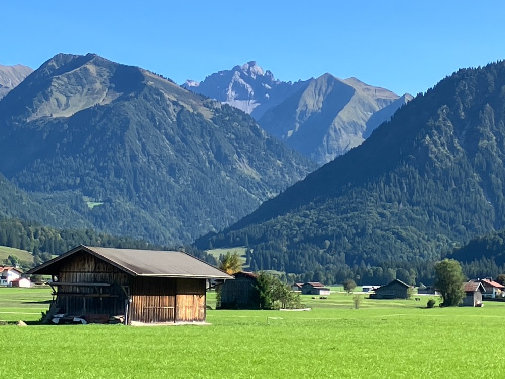 We had a ginormous meal (aka American-sized portions) at a restaurant partway down the mountain, and talked about places to hike nearby. Alas, it wasn’t to be. The weather closed in for the rest of our stay, with the clouds obscuring the views and frequent rain. We could have coped with the rain, but why hike with no view? We contented ourselves with walks around Oberstdorf. And we were very lucky we got here when we did and not four days later!