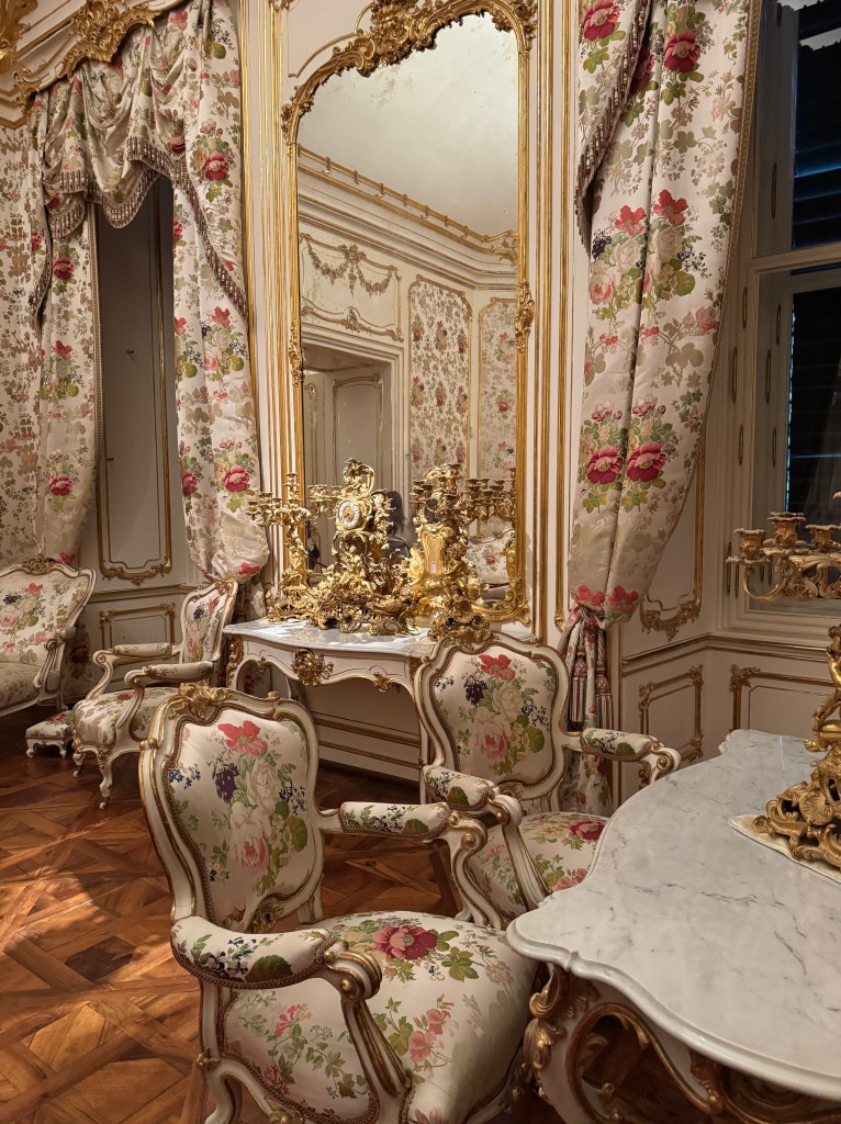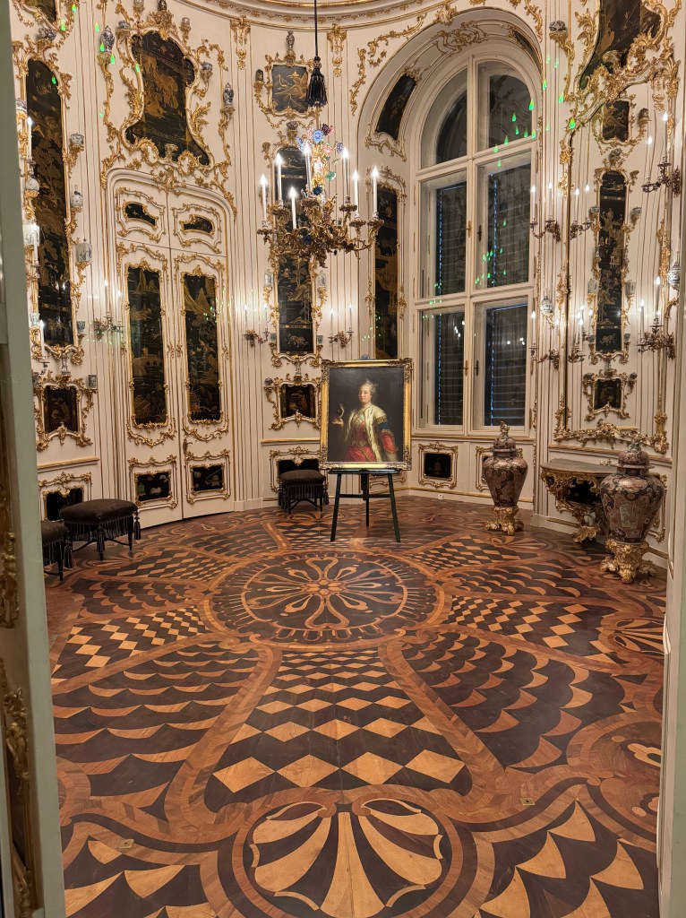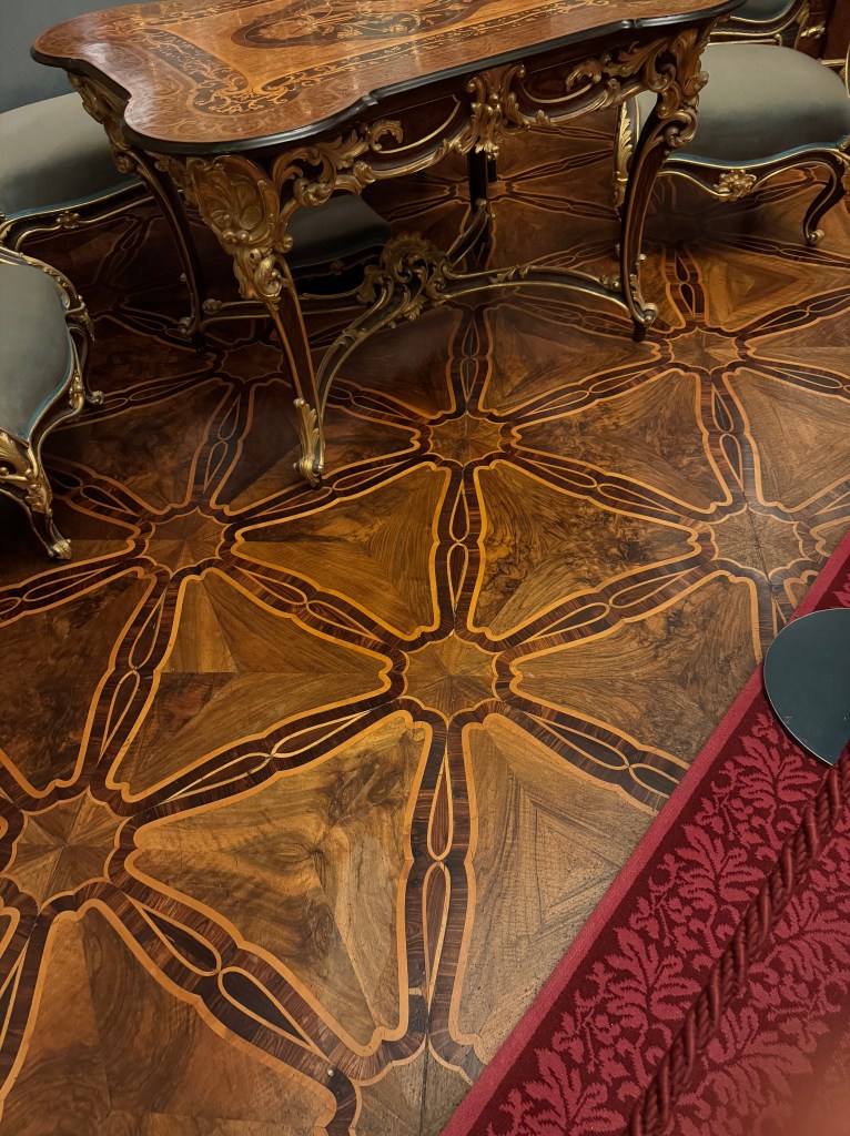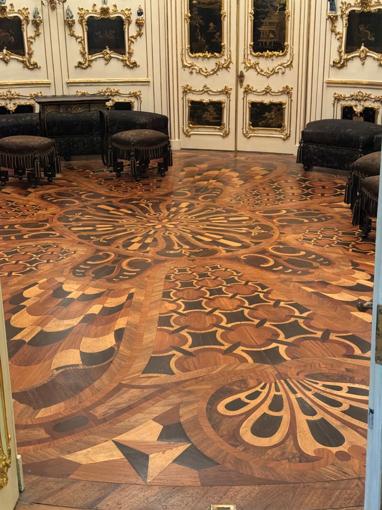 The Hapsburgs had obviously never heard that less is more. If they saw a bare space, they filled it. If they liked a fabric, it went on everything in the room. I liked the dark blue in Empress Sisi’s bedroom, but would have appreciated it more if it was on the walls or the bed or the chairs, not all of them! Facing sensory overload, I started to focus on other things – like the floors: