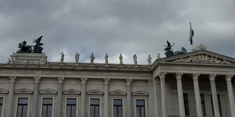 As we first walked around Vienna, we noticed a few interesting details when we remembered to look up from the cobblestones, people dodging, and window shopping. So we started to remind each other, “Don’t forget to look up!” Good advice in any city, but especially here.