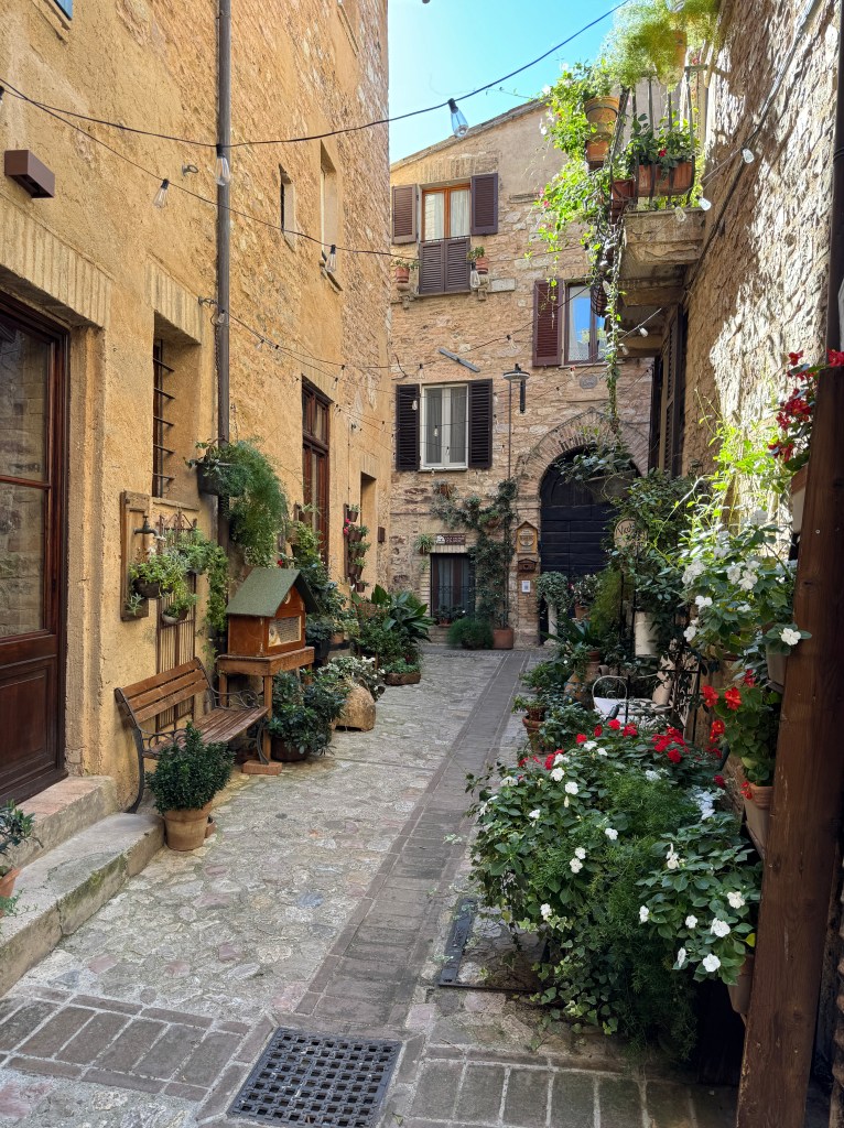 We’ve made it to Italy! We’ve been in Umbria, near the town of Spello, for two weeks. Unfortunately I had quite a bad cold (or covid?) for the first week plus, as well as for our one day in Milan, so not much has been happening. Our trip from Vienna to Milan was a thirteen-hour odyssey: walk, tram, train, train, train, subway, walk. We’d been planning to take a taxi from the train station to the hotel, but the line was probably 50 people long, so we turned around and figured out the subway. I slept for most of the next day – thank goodness I hadn’t gotten us opera tickets at La Scala, something I had seriously considered.