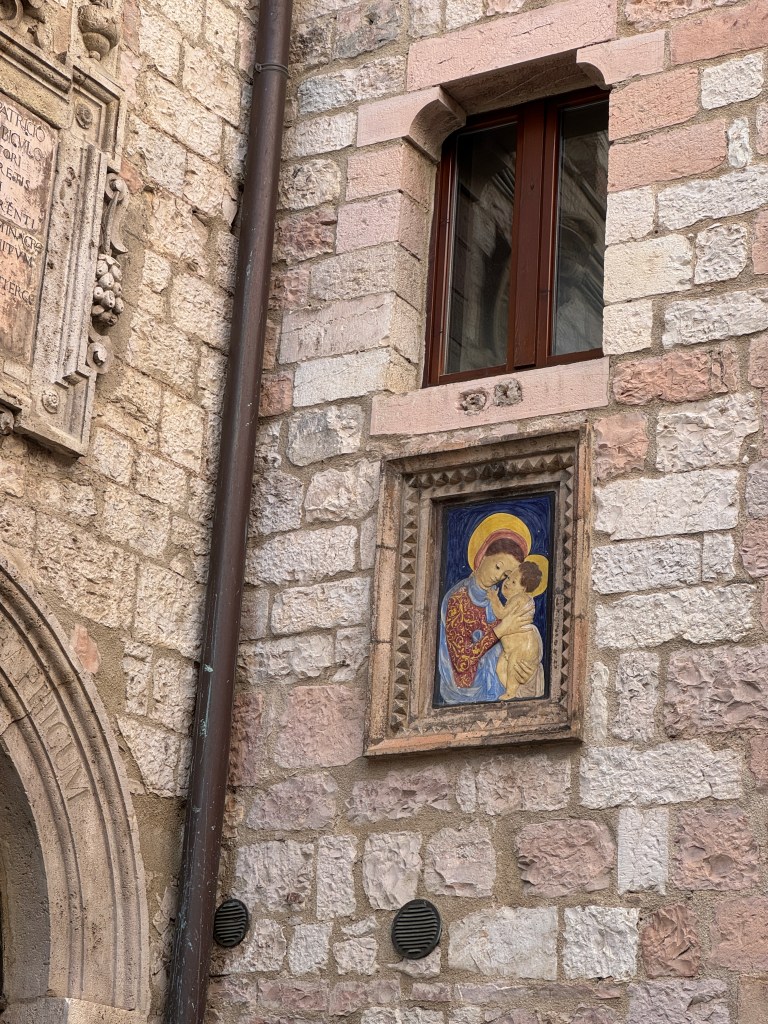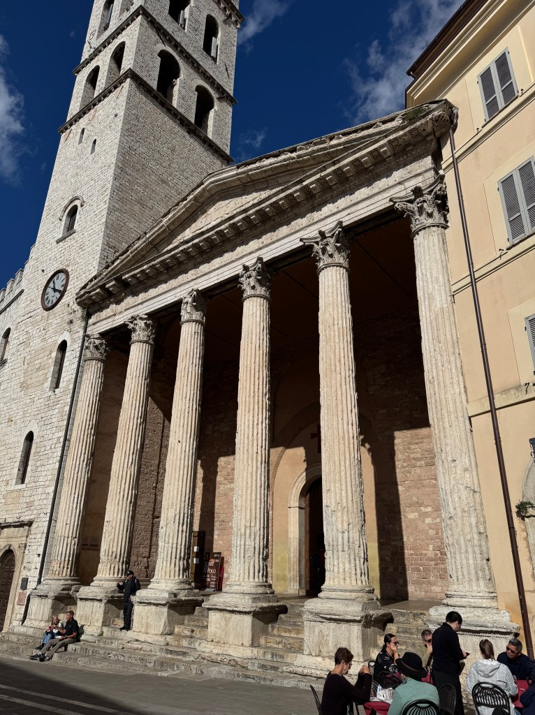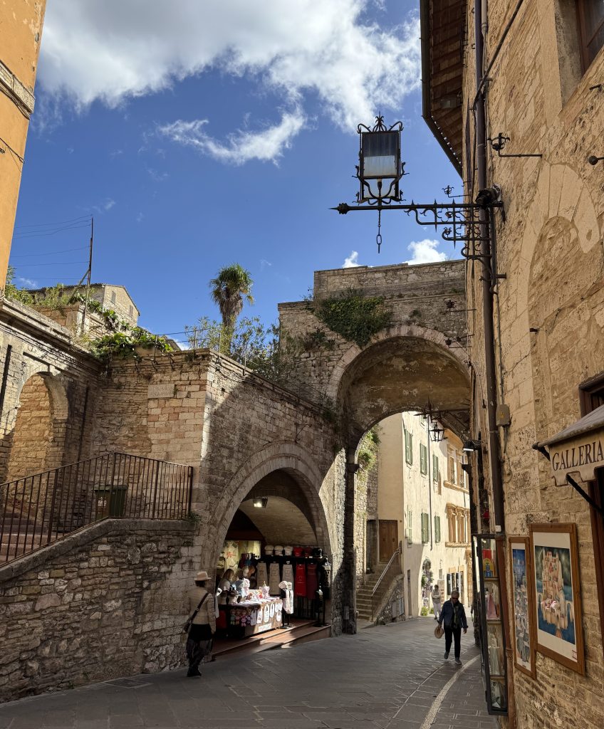 We spent a day in Assisi, learning about the town and Santa Chiara (St Clare) and San Francisco (St Francis) from Rick Steves. (Our guests, J&L, introduced us to Rick’s free audio guides and we all gave him a listen as we wended our way through town.)