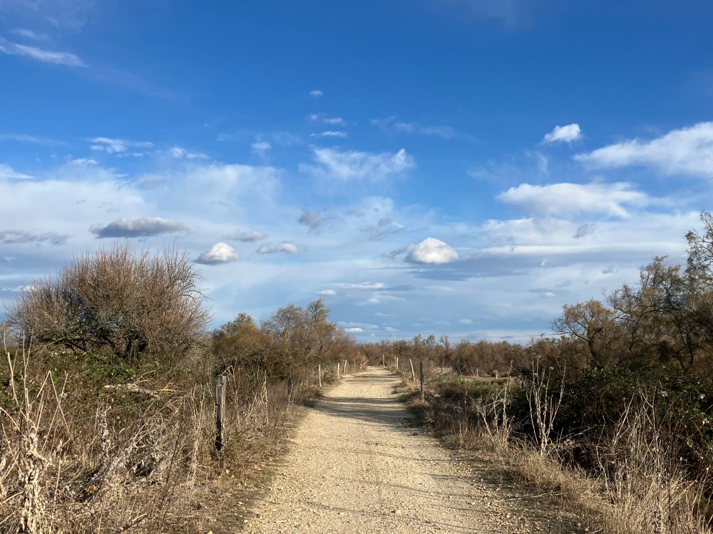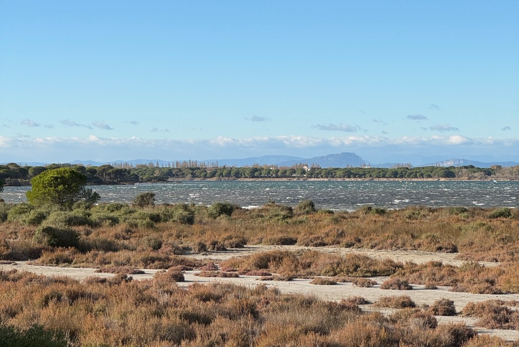 Our other island visit skipped the town and went straight to a nature preserve, le Bois du Boucanet. The previous day we’d done a hilly hike, so we enjoyed the ease of walking on the sandy, flat trails. The mistral was blowing, though, and hat-keepers and lots of layers were a must.