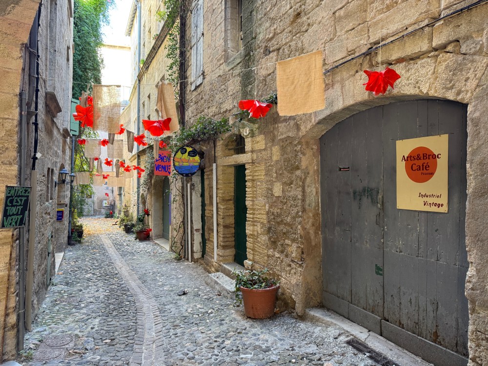 The owner of the apartment we’re renting told us the town of Pézenas was worth a visit, so we drove about an hour to take a look. Arriving around lunch time, we had a mediocre meal at a restaurant chosen at random – I should have done some advance research!