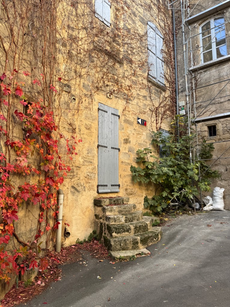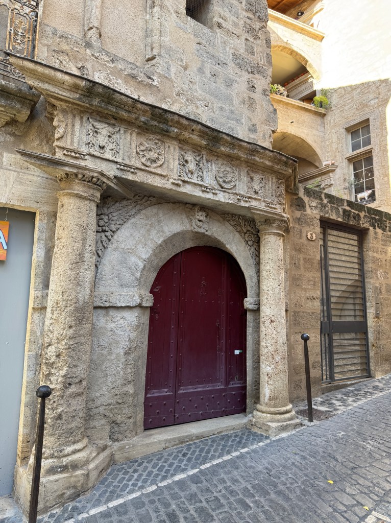 Pézenas’s old town is filled with winding narrow alleys. Fortunately the Office du Tourisme offers a pamphlet for a self-guided walking tour: Without it we would surely have missed many of the attractive nooks and crannies in town. Like so many places we’ve visited so late in the year, and probably exacerbated by it being a Monday, almost nothing was open.