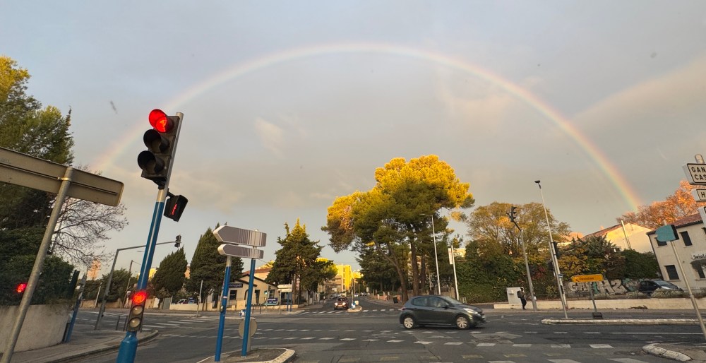 And we were trerated to a rainbow on the way out of town. The first one we’ve seen since we saw so many in Norway!