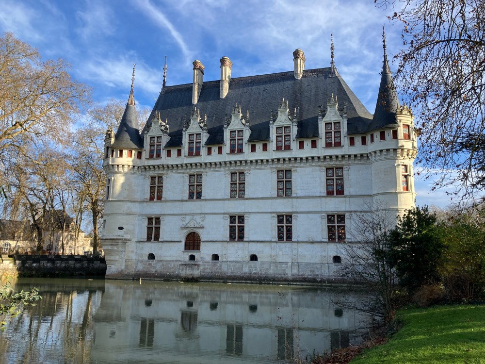 We visited Azay-le-Rideau right after seeing the Christmas extravaganza at Villandry (they’re only 15 minutes apart). Bad idea. It’s a perfectly nice château, but really, there’s no comparison. We (even M, the photo maniac) took only a fraction of the pictures we’ve taken at the other châteaus. So, this post is a short one.