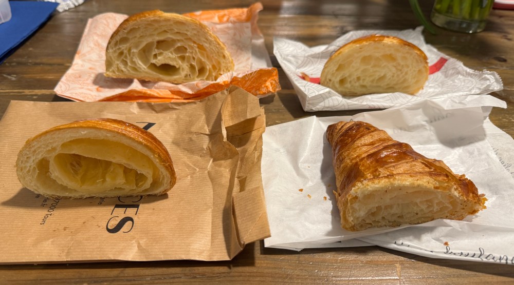 We had tried several of these before, but it’s hard to accurately compare them when you’re eating them several days apart. And I didn’t have a clear mental (gustatory?) image of the perfect croissant. Trying four at once, however, clarified things.