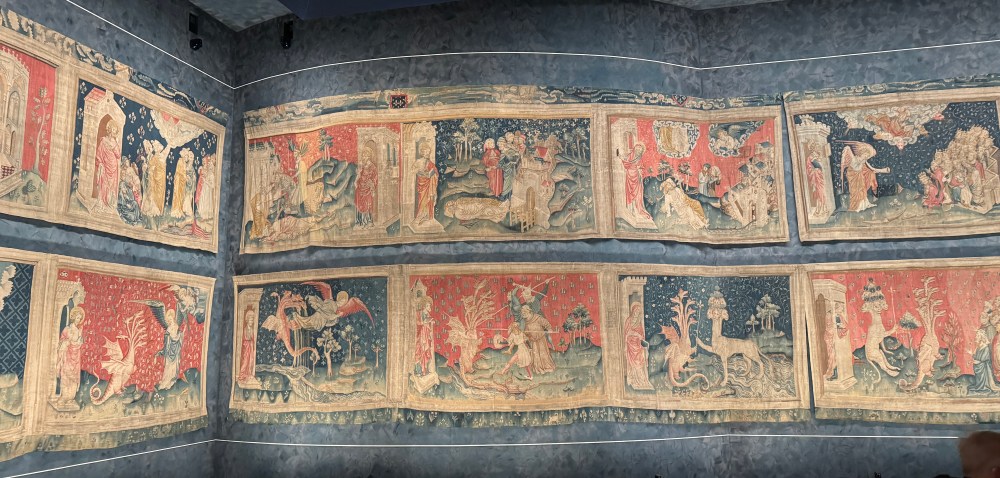 We visited the château at Châteaudun to see its tapestries. The château is on the Loir river (le Loir in French), which is not the Loire river (la Loire) in Tours. How confusing is that? Anyway… An exhibit on tapestry making mentioned that Angers has both a huge antique tapestry, the Apocalypse (or Revelation) tapestry,… Read more